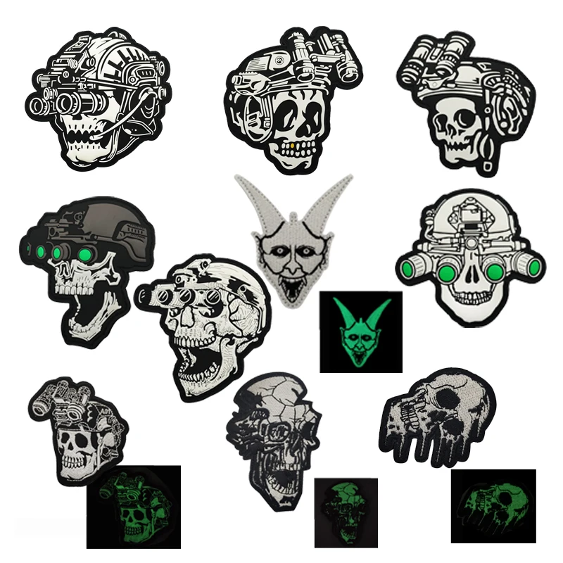 Dispositivo de visión nocturna, insignia táctica de esqueleto, 3D, PVC, gancho de Calavera, brazalete luminoso, casco, uniforme, emblema de mochila, nuevo