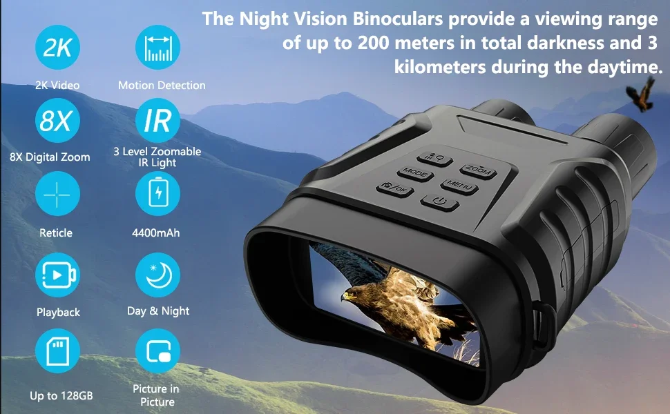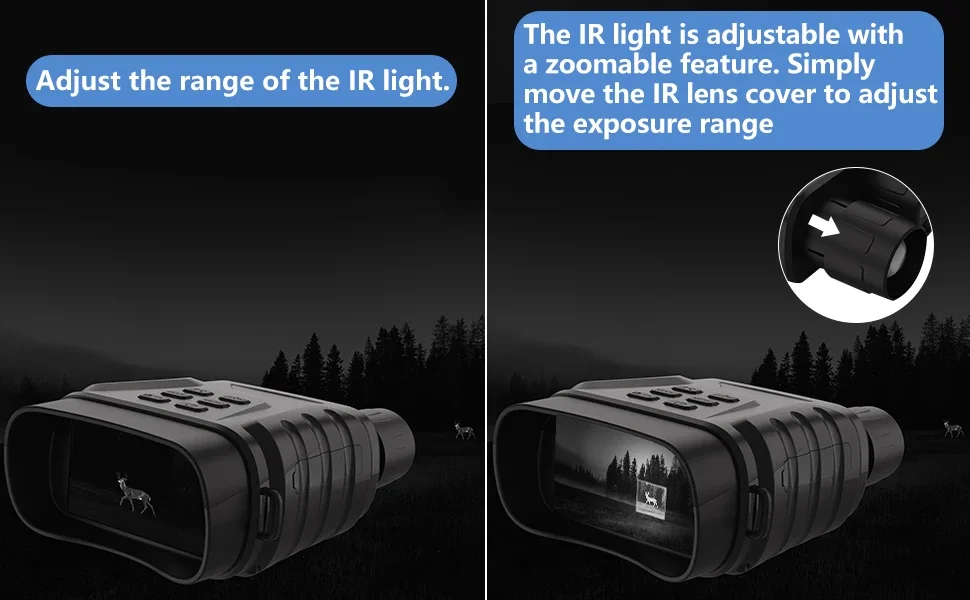 9.Perfecto para caza, vigilancia y camping: los binoculares de visión nocturna de grado militar están diseñados específicamente para caza, vigilancia y campamentos, estas gafas de visión nocturna brindan un excelente rendimiento visual en entornos nocturnos.Ya sea para realizar presas, realizar tareas de vigilancia o acampar al aire libre, este dispositivo ofrece soporte visual nocturno confiable, mejorando la seguridad y eficacia de las actividades.