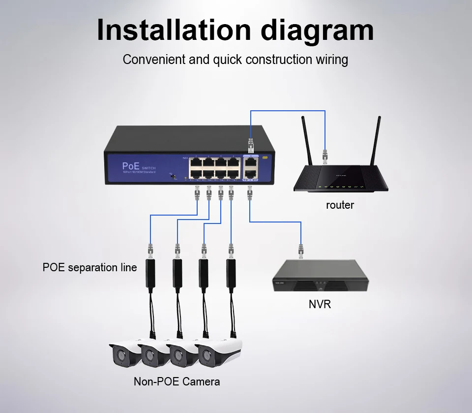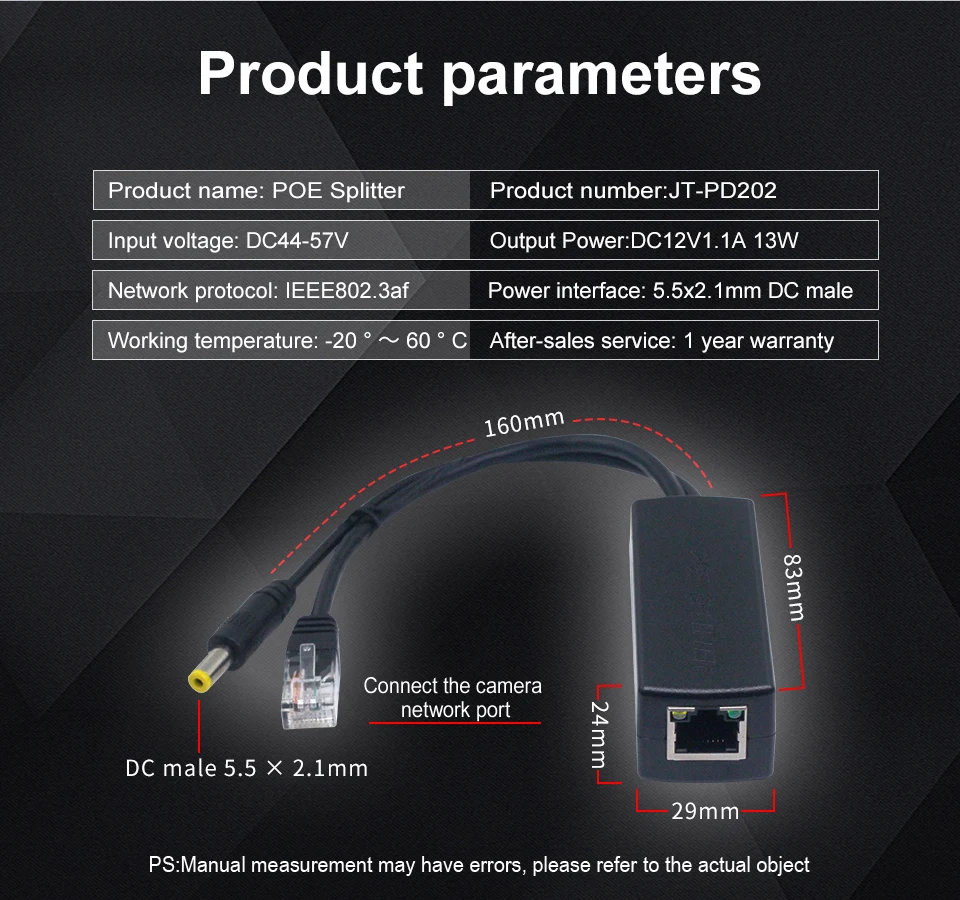 Distributeur Poe 48v a 12V para hikvision, extenseur de connecteur Poe, enrutador conectable, caméra de vigilancia, etc.