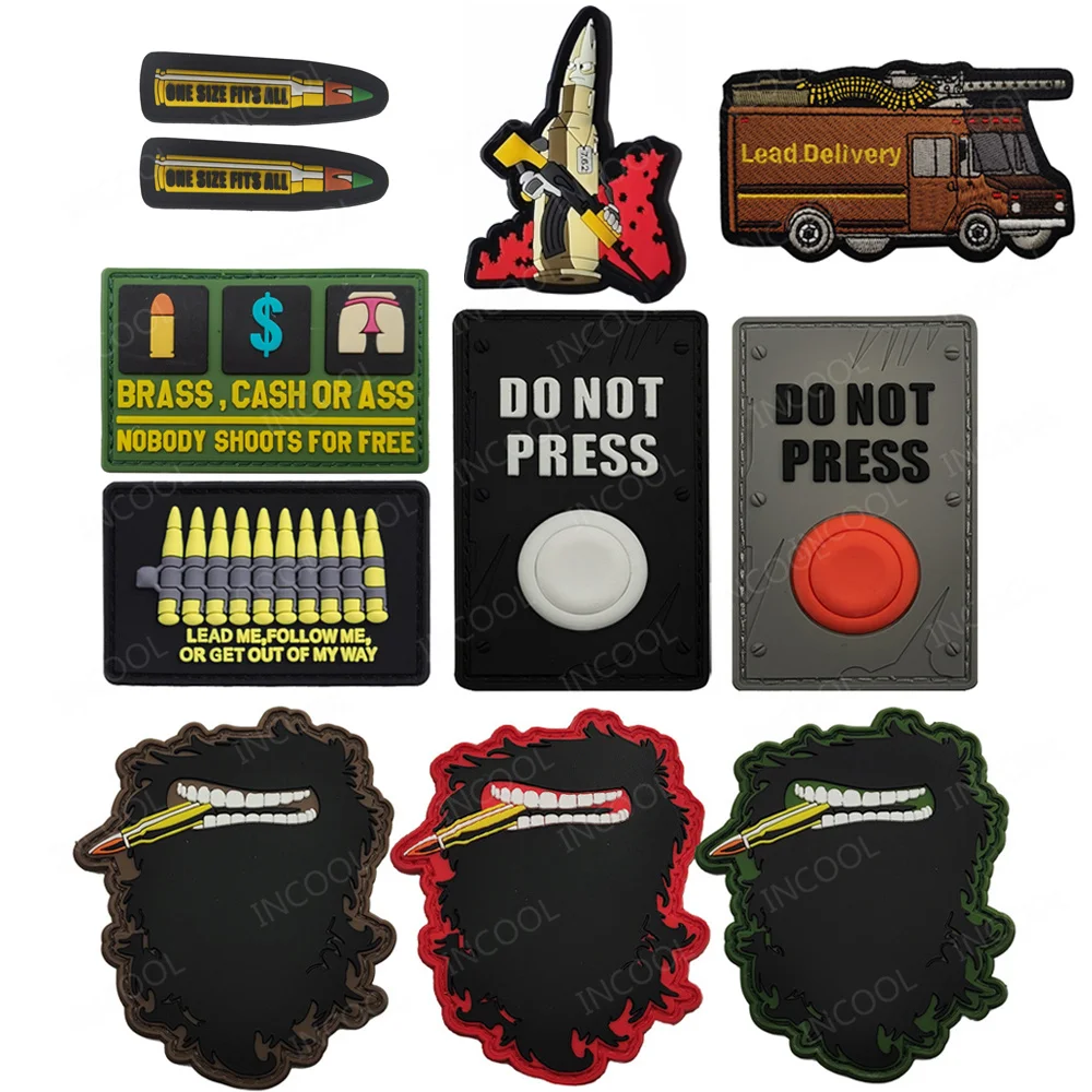 [Specification]: Funny PVC Colorful Bullets Do Not Press Rubber Patches Hook Tactical Patch Badges Appliques For Backpack Vest Helmet Clothing
