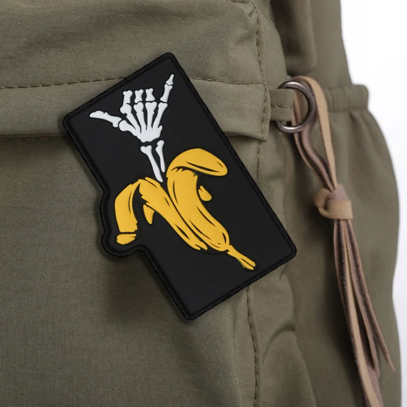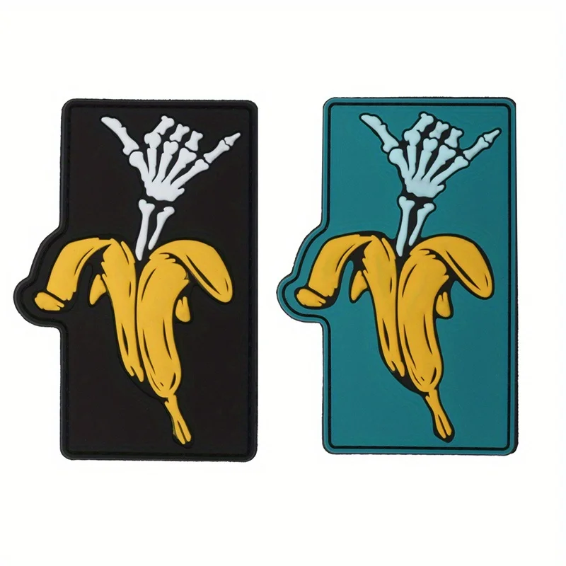 Divertidos parches tácticos de palma y calavera de plátano, insignia de moral de esqueleto de plátano, emblema creativo de gancho y bucle de PVC, accesorios para mochila táctica