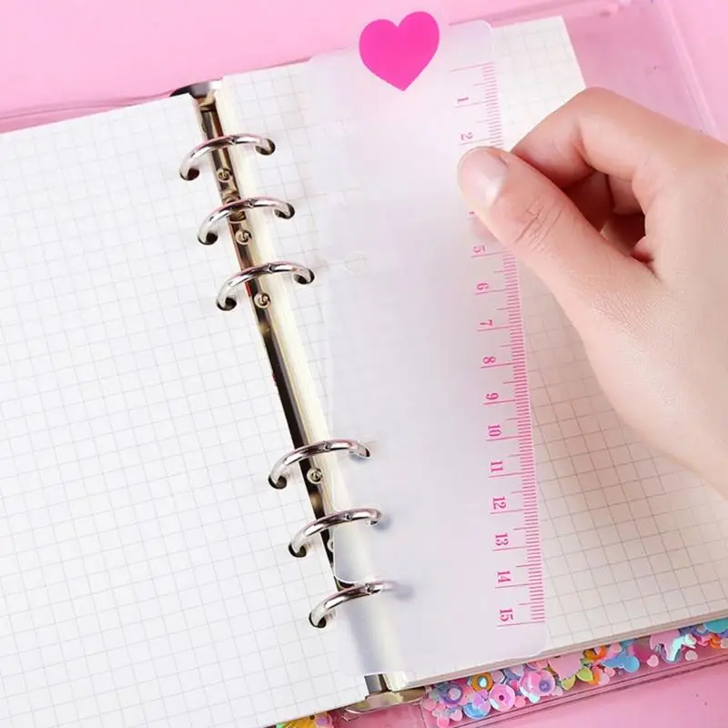 Características:OOTDTYEsta regla de carpeta preperforada de 6 agujeros Love Heart combina las funciones de marcadores y herramienta de medición, con un adorable color rosa claro que agrega encanto a cualquier tarea.
