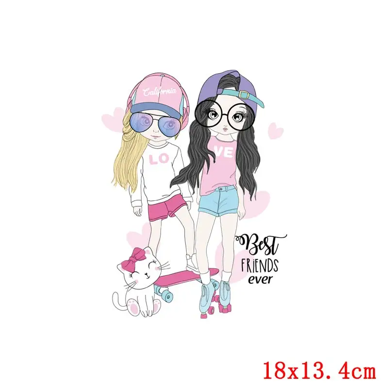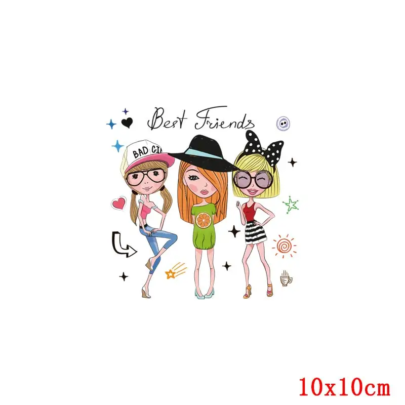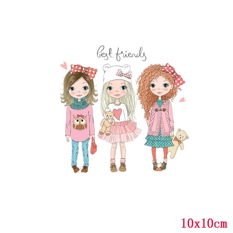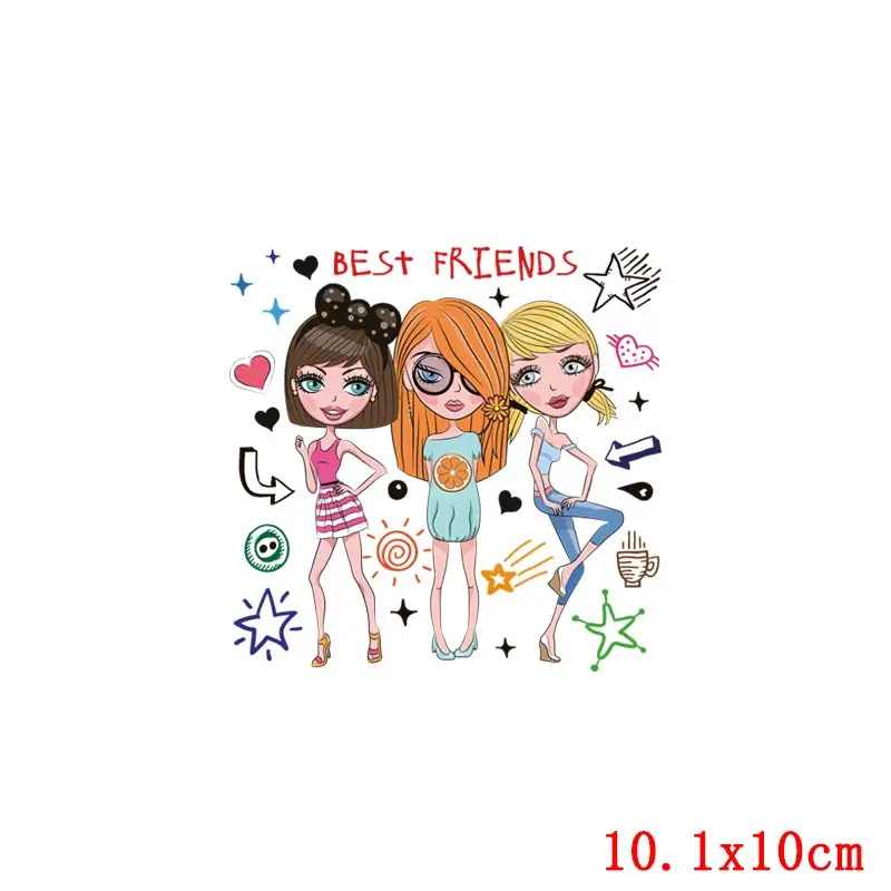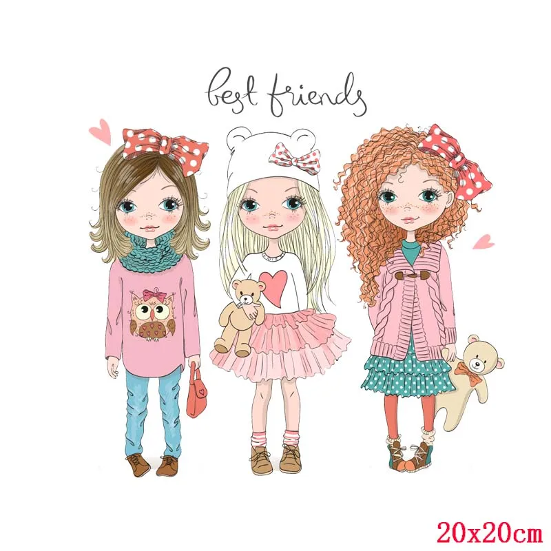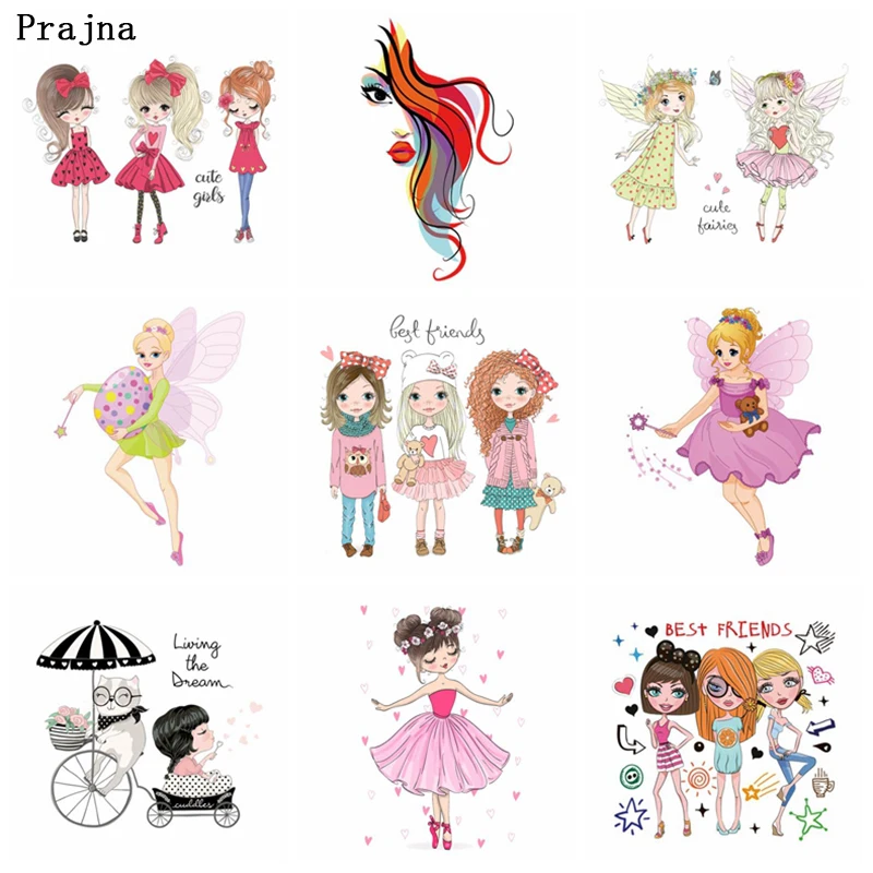 DIY alas belleza pegatinas térmicas impreso amigos chica transferencia de calor bailando princesa transferencia moda chica pegatinas decoración