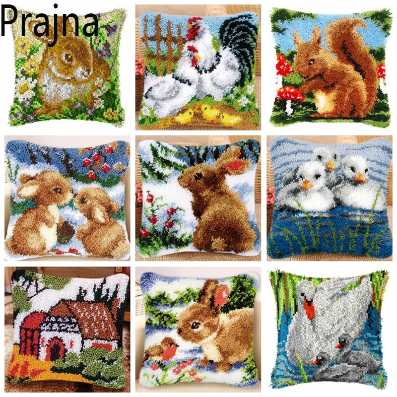 DIY tejido a mano conejo pollo funda de cojín bordada almohada sin terminar Material bordado pestillo gancho Garen Om Te Haken