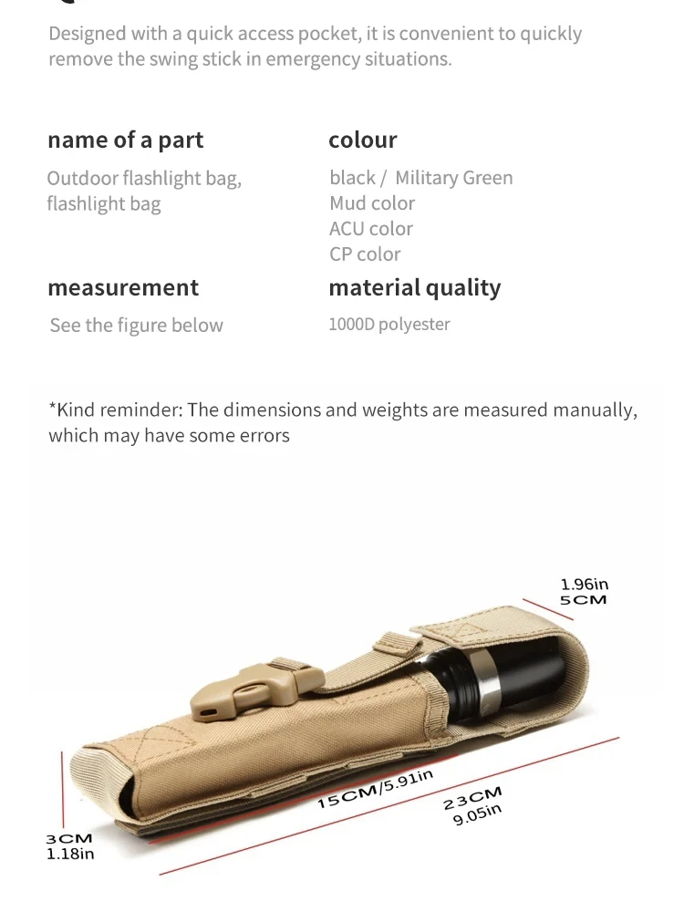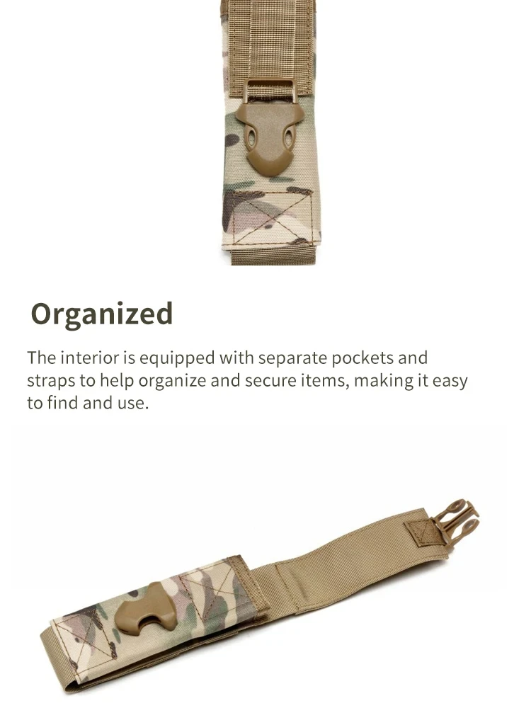 Resistente al agua y al polvo: para hacer frente al mal tiempo y las condiciones en el ambiente exterior, la bolsa para linterna generalmente tiene funciones impermeables y a prueba de polvo.Está hecho de material impermeable, que puede evitar eficazmente que entre humedad y polvo en la bolsa y proteger la linterna contra daños.