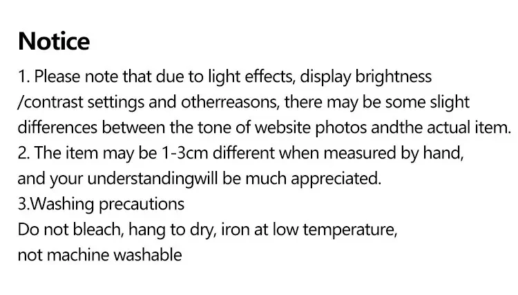 2.El artículo puede tener una diferencia de 1 a 3 cm cuando se mide a mano y agradeceremos mucho su comprensión.