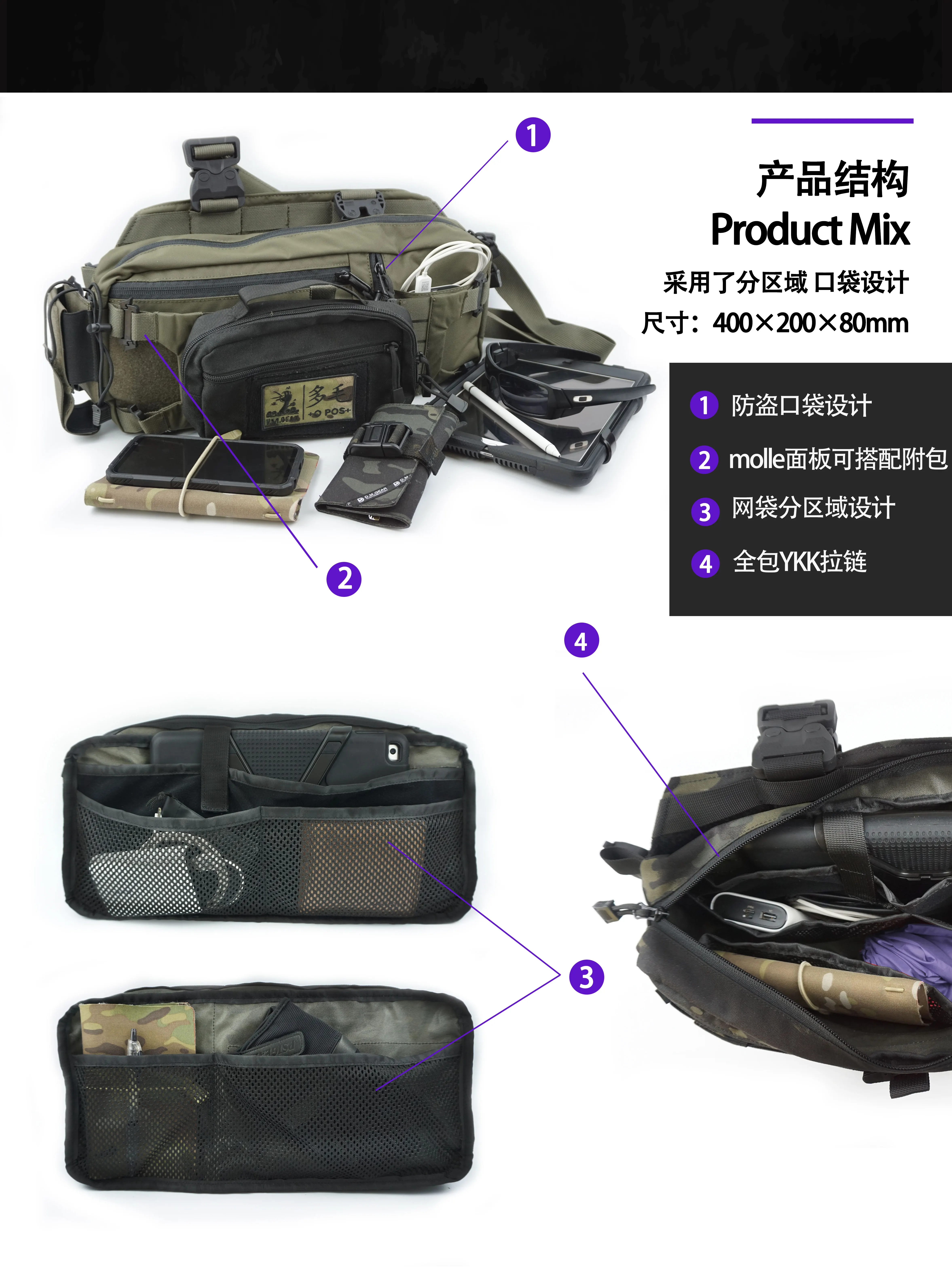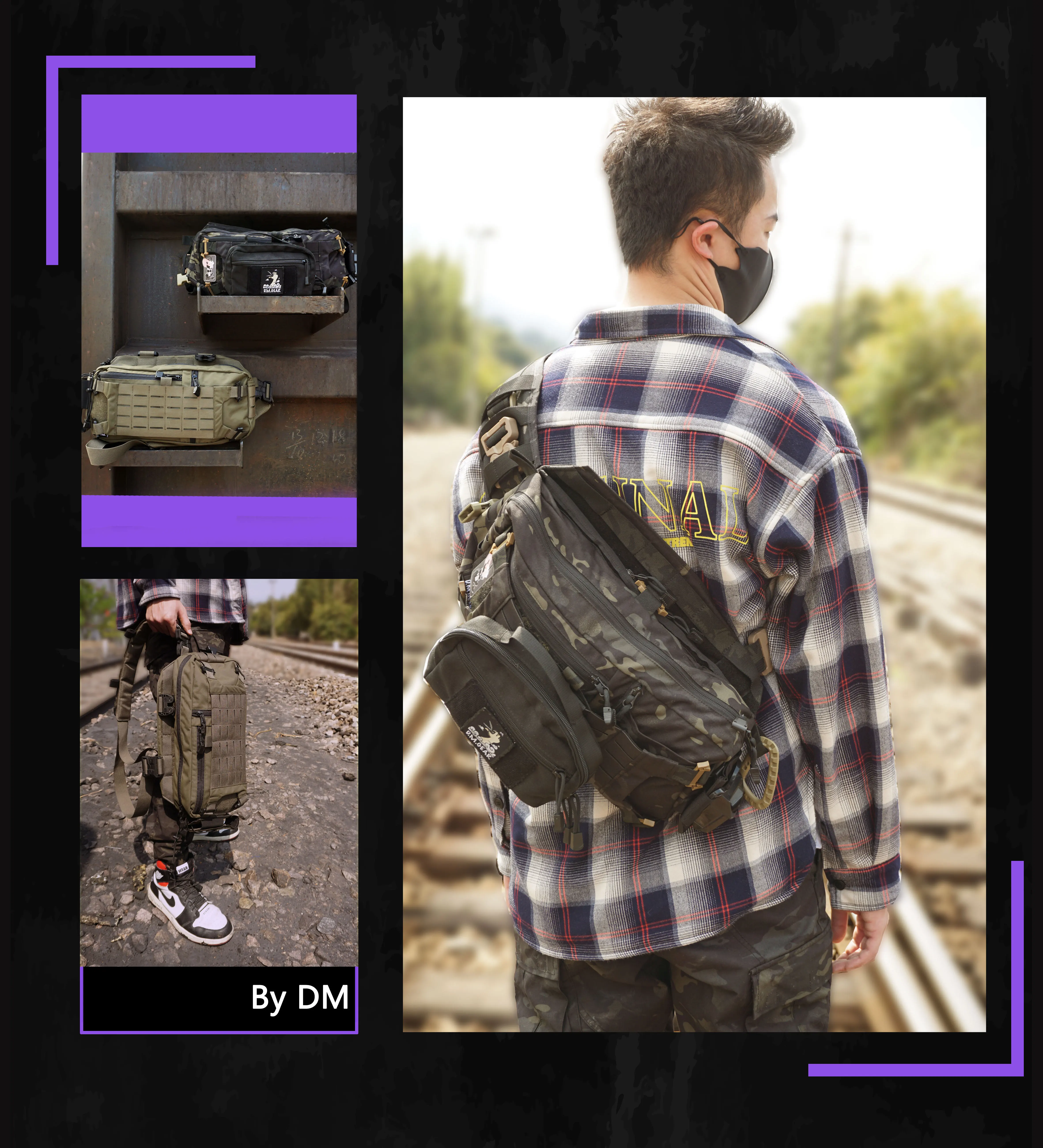 DM-bolso de hombro táctico peludo para hombre, mochila multifuncional colgante para el pecho, impermeable, para exteriores, 421X