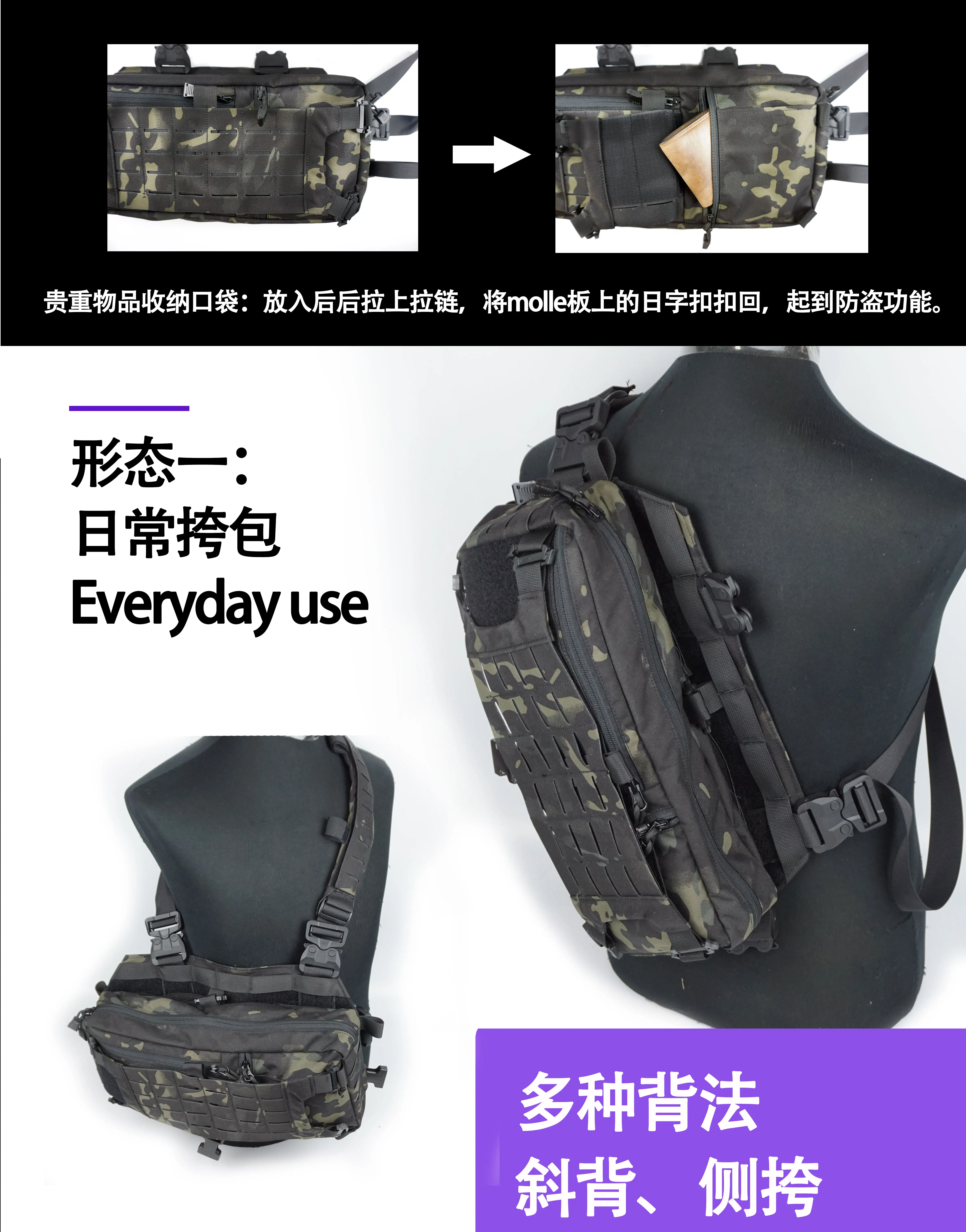 DM-bolso de hombro táctico peludo para hombre, mochila multifuncional colgante para el pecho, impermeable, para exteriores, 421X