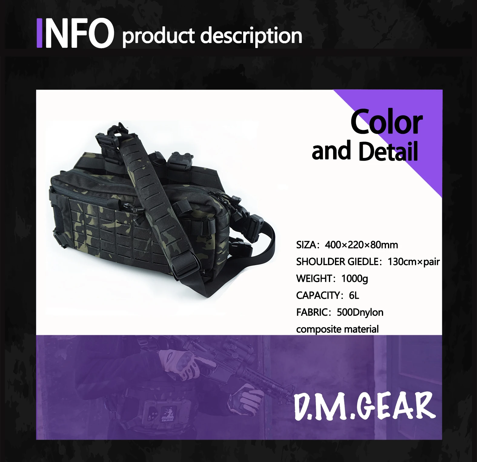 Esta versión es cambiable, puede ser una mochila táctica, un bolso cruzado o un bolso de pecho.