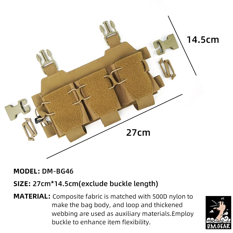 DMgear Tactical Triple Mag Pouch con hebillas para Chest Rig 556 Mag Carrier Panel Airsoft