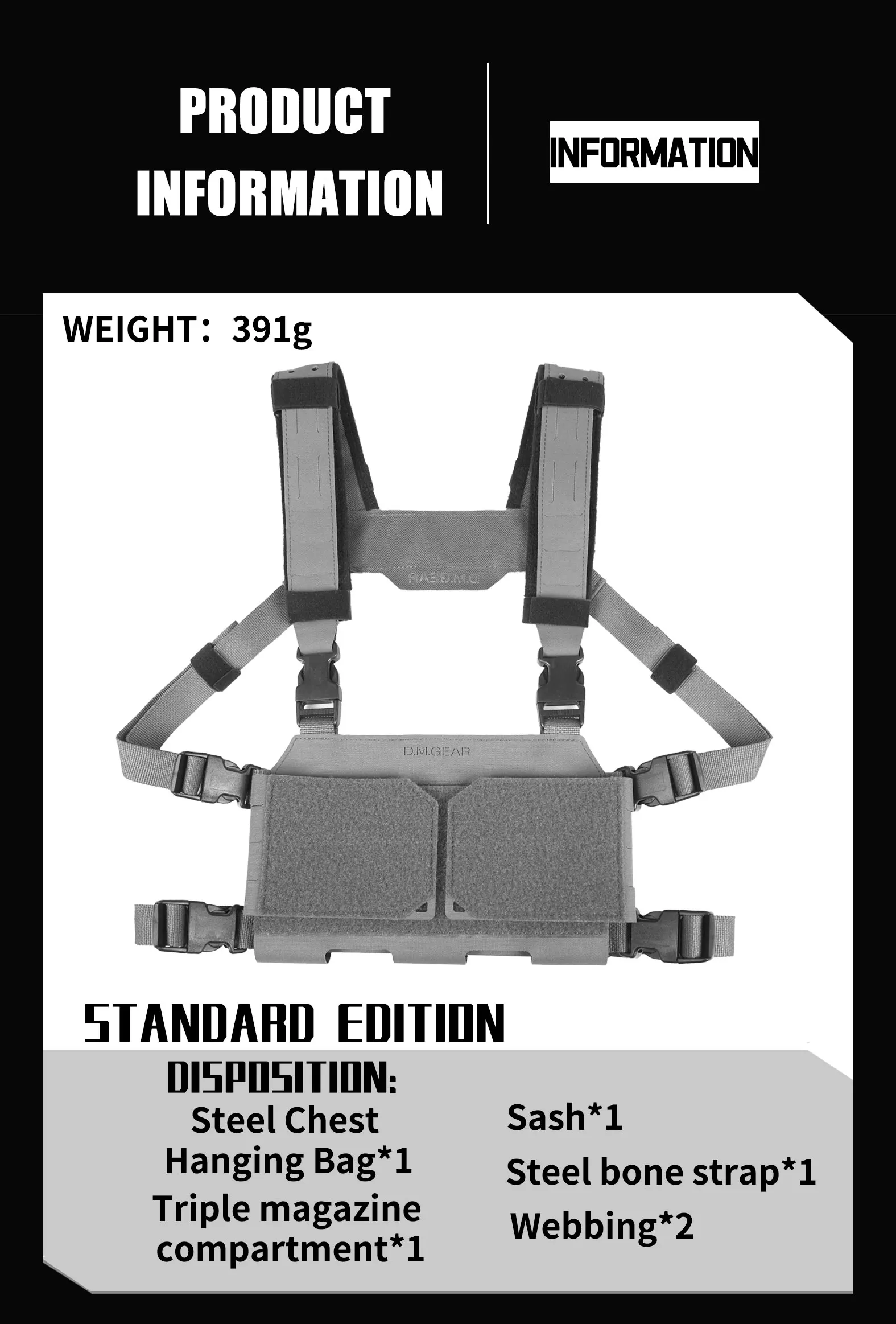 DMGear-portador de placa de equipo táctico, chaleco táctico de aparejo de pecho de caza para Airsoft, exteriores y Paintball