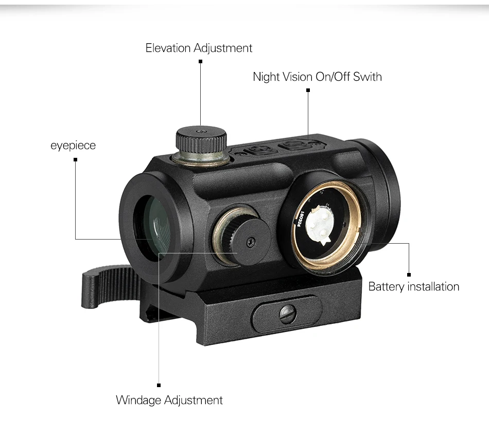 DOCTER-mira táctica de punto rojo 1x20, con elevador QD, mira óptica de 20mm, pistolas diseñadas Ak 47, mira telescópica de caza para caza