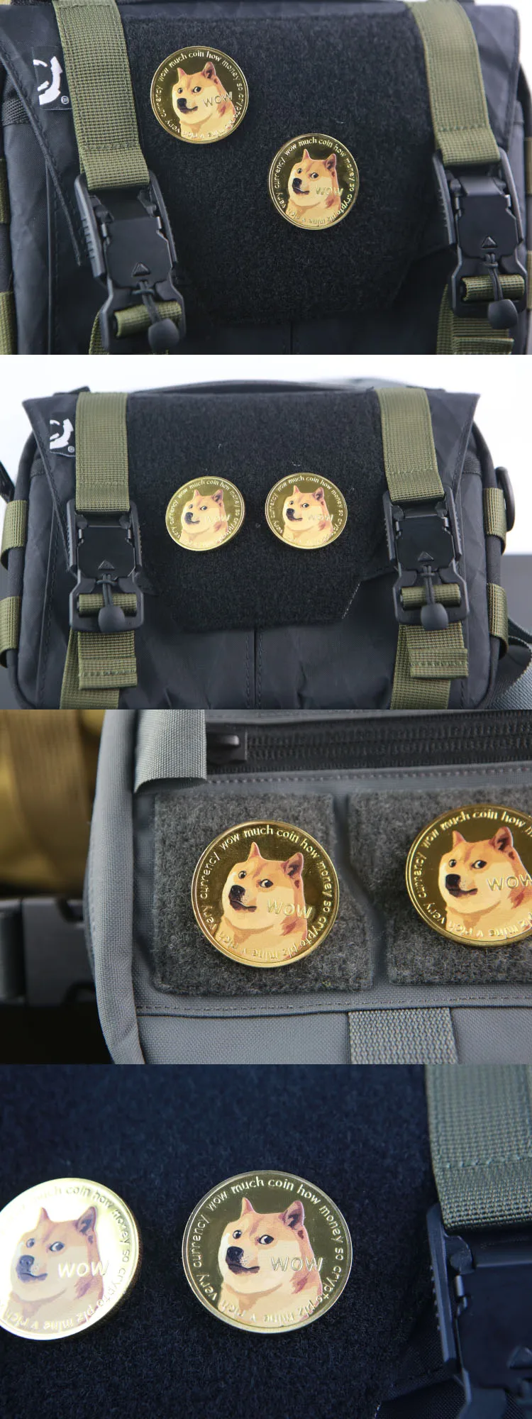 Dogecoin-Parches de Metal, insignias de moneda Wow, decoración DIY para chaleco táctico, mochila con gancho