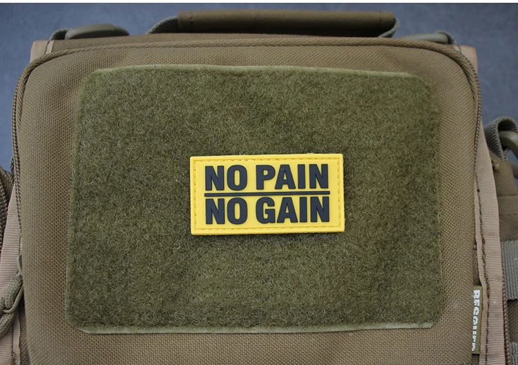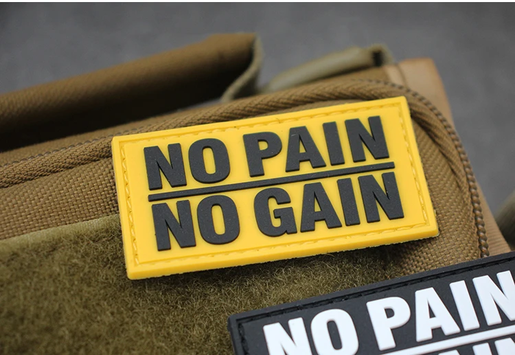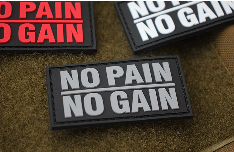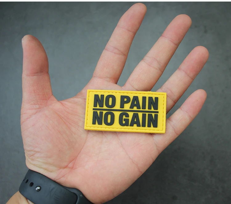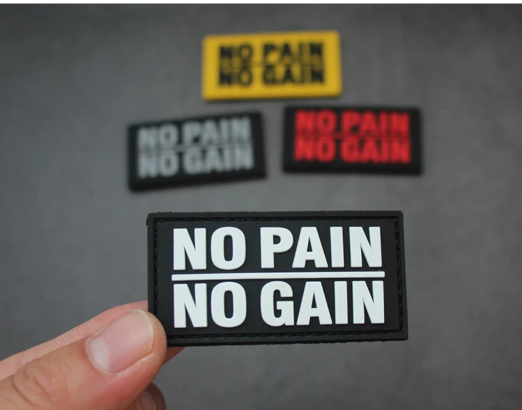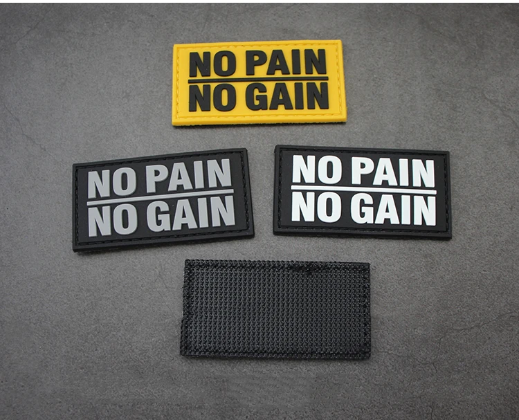 Sin dolor, sin ganancia, parche de PVC bordado, brazalete de goma táctico luminoso, insignia que brilla en la oscuridad para bolsa DIY, ropa, chaleco, decoración