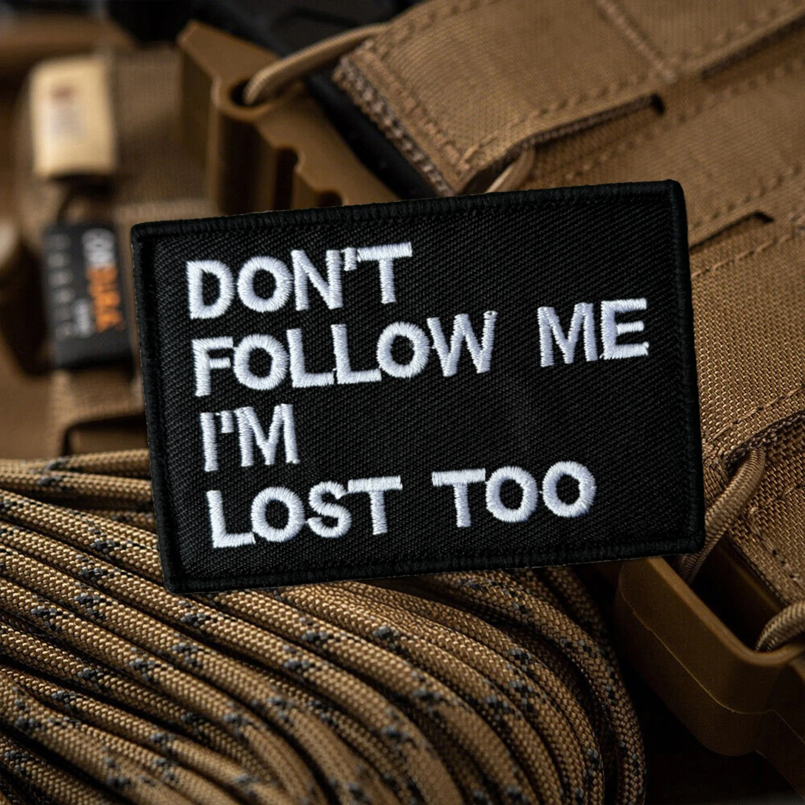 "DON'T FOLLOW I'M LOST TOO" Tactical Patch Hook&Loop Embroidery Patches Armband Military Morale Badge Backpack Clothes Stickers