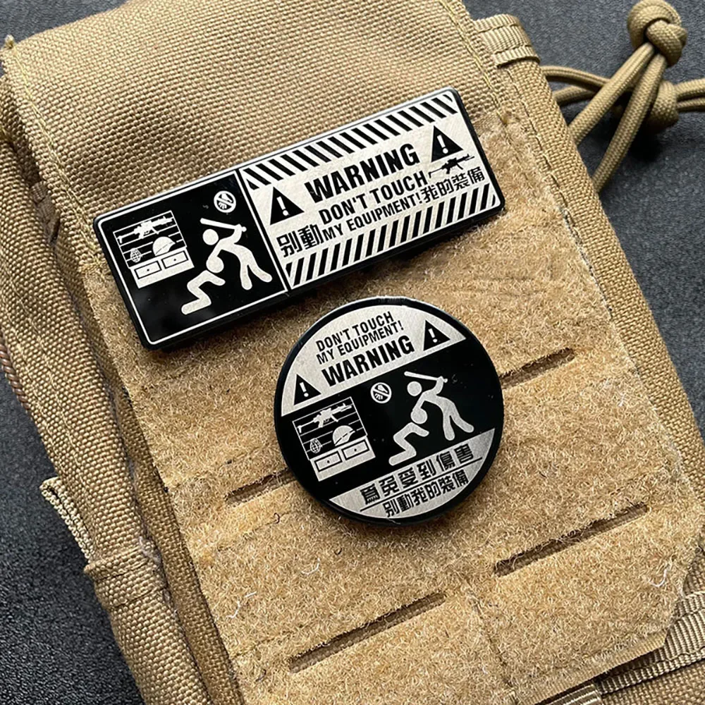 Don't Touch My Equipment parche de Metal de advertencia, brazalete militar, insignia de moral, parches de gancho y bucle, accesorio táctico, pegatina de mochila