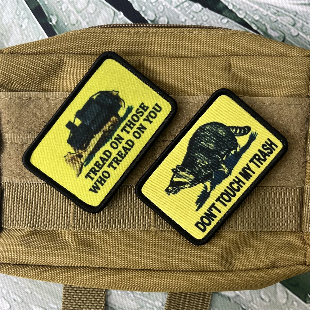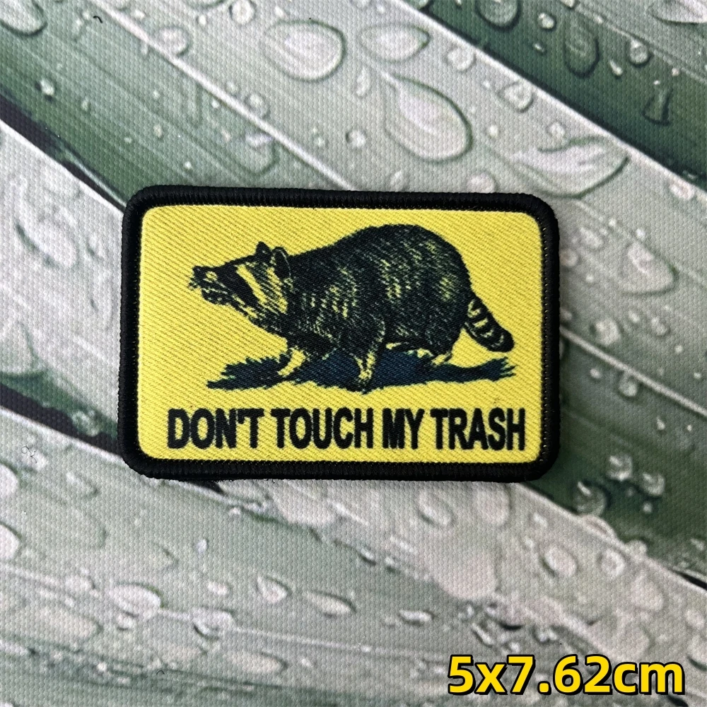 Don't Touch My Trash Raccoon Gadsden moral Badge Killdozer Tread on the Who Tread on You, parches impresos, pegatinas tácticas