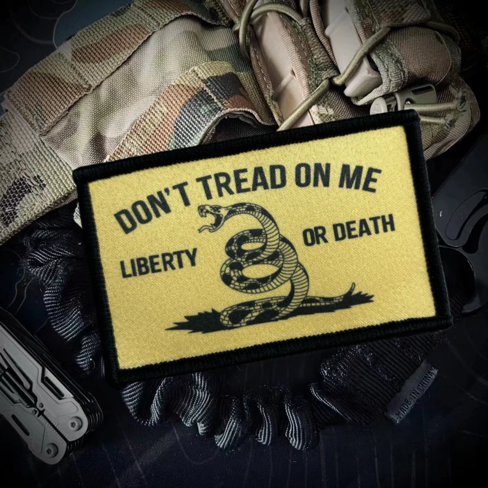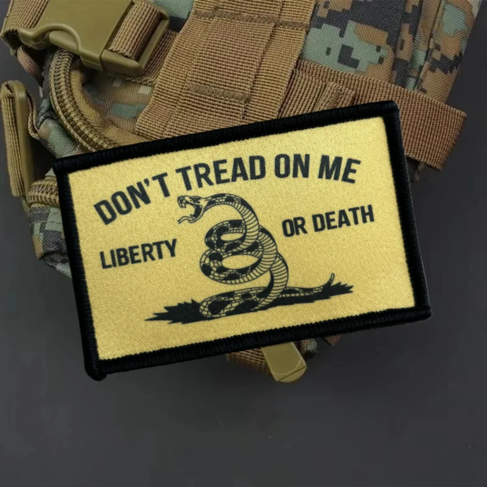 Don't Tread On Me, parche táctico de libertad o muerte, brazalete con gancho y bucle impreso, insignia de moral del ejército militar, pegatinas de tela para mochila