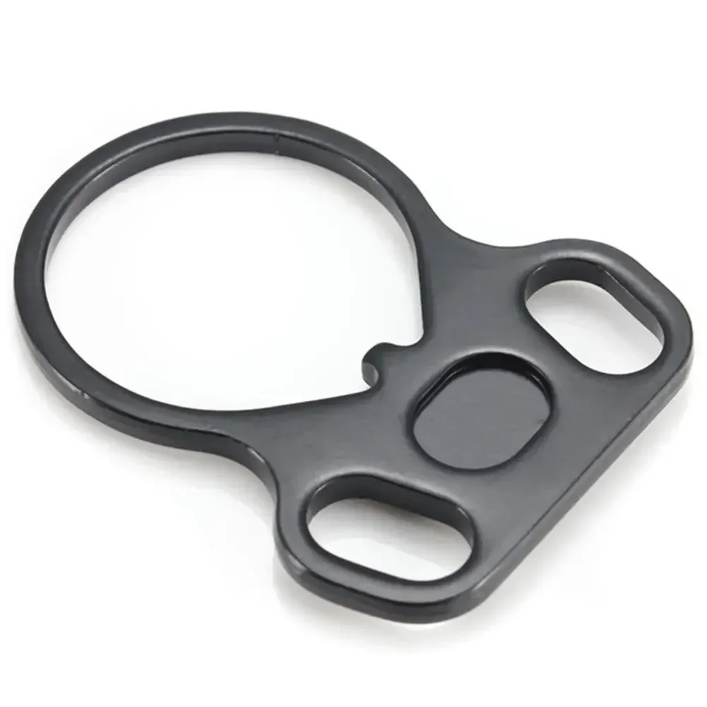 Permite la fijación de la mayoría de los eslingas de punta simple y doble. Puntos de fijación ambidiestro para tiradores diestros y zurdos. Los puntos de fijación en ángulo permiten una funcionalidad superior sin molestar. Especificaciones: Tamaño: como se muestra en la imagen Material: Acero El paquete incluye 1 adaptador de eslinga táctica para PC