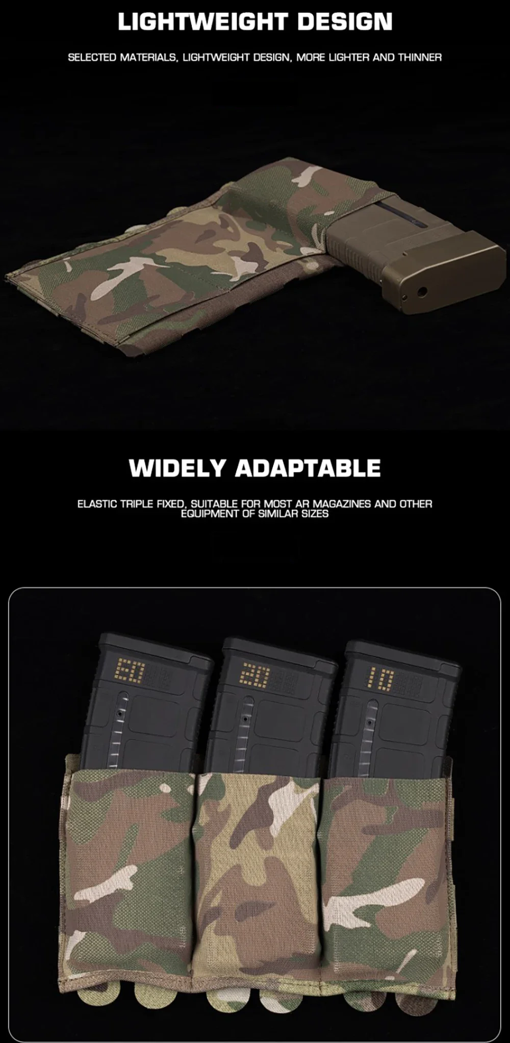 Multicam parece una buena opción. El bolsillo en sí es un poco... más profundo que los modelos anteriores Aún no ha sido probado, pero parece ser bastante bueno. Sujeta el cargador de manera segura.