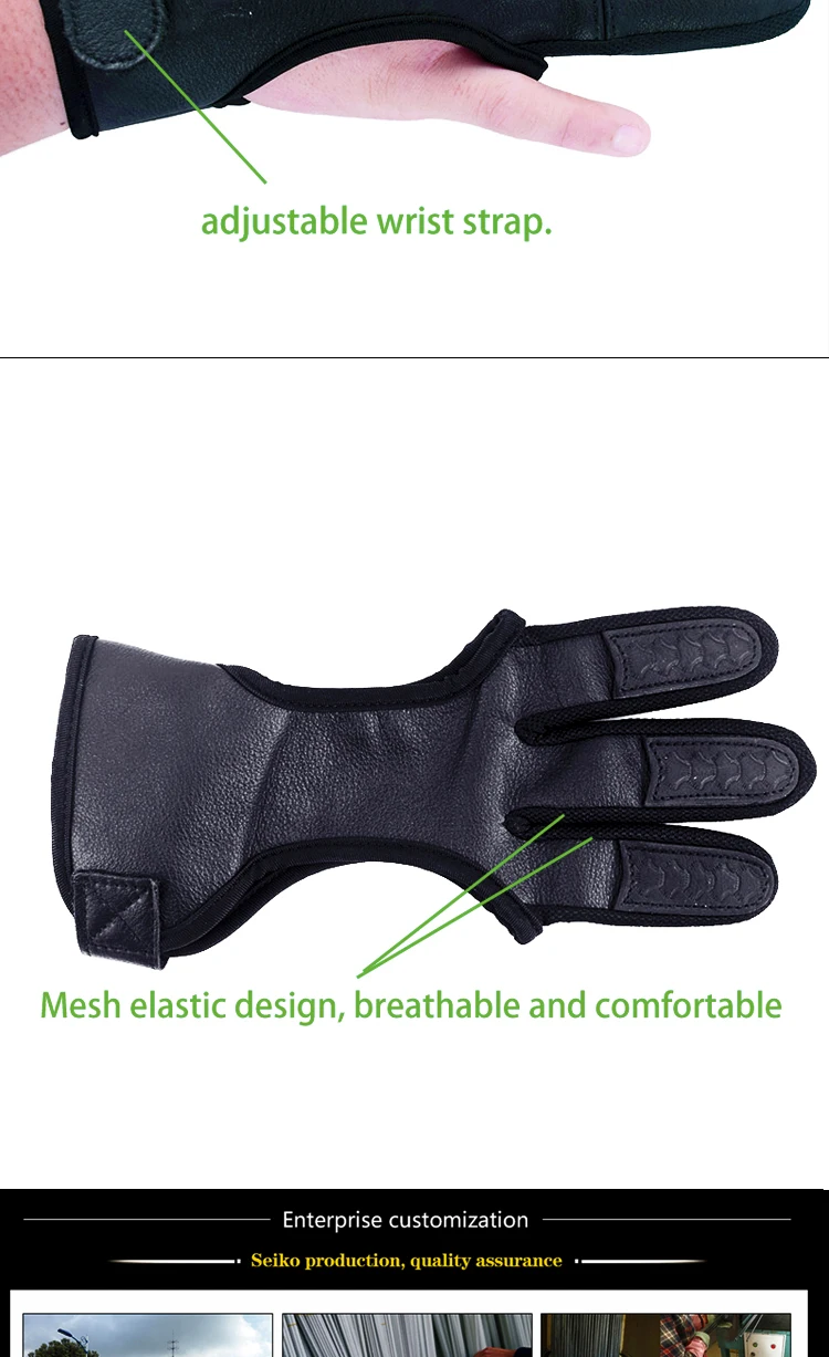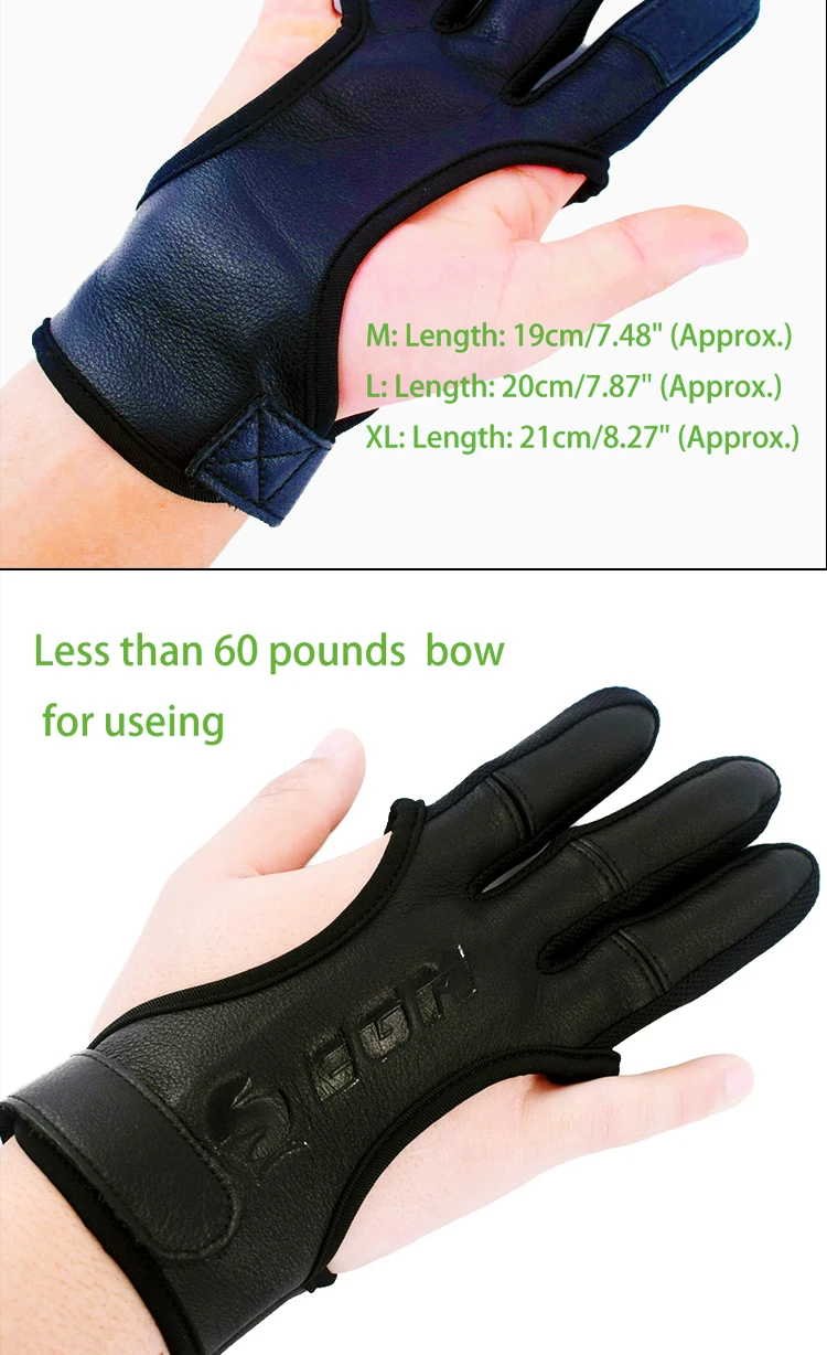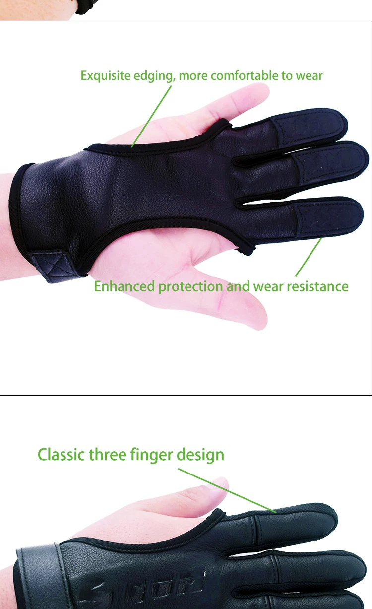 Guante protector de manos con 3 dedos y lazo elástico de alta calidad para tiro con arco
