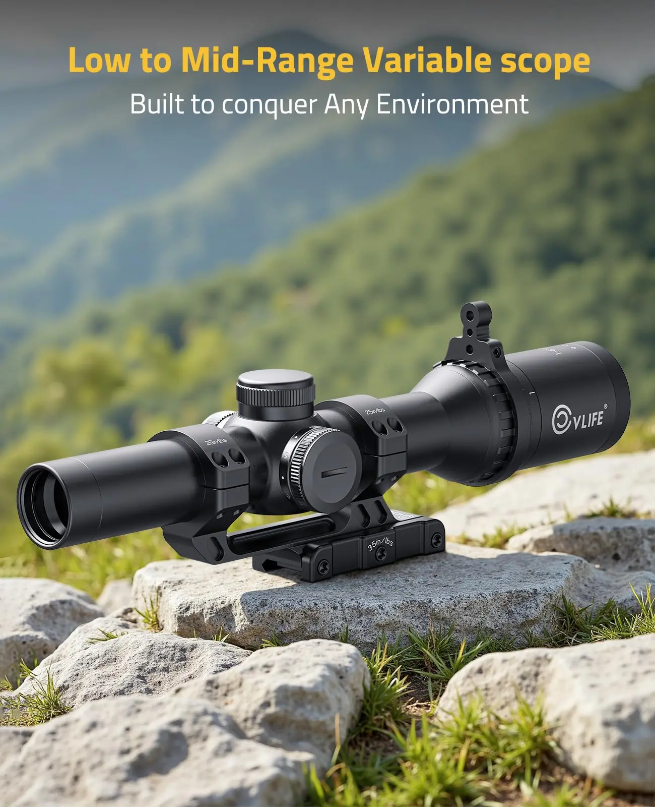 Torretas de reinicio precisas: diseñadas para ajustes rápidos y precisos, las torretas de precisión son ajustables con un clic de 1/2 MOA que se puede restablecer a cero después de iniciar sesión.