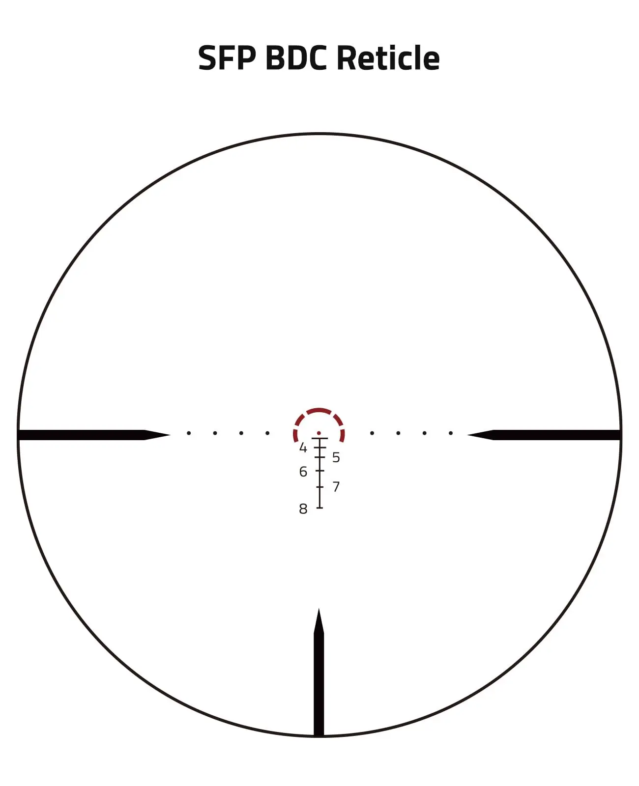 Retícula iluminada del segundo plano focal: la báscula del retícula SFP BDC con precisión con aumento e iluminación roja de 6 niveles que ayudan a mejorar la adquisición de objetivos clara, simple y rápida y mantener retenciones precisas en todos los niveles de zoom en condiciones de poca luz.