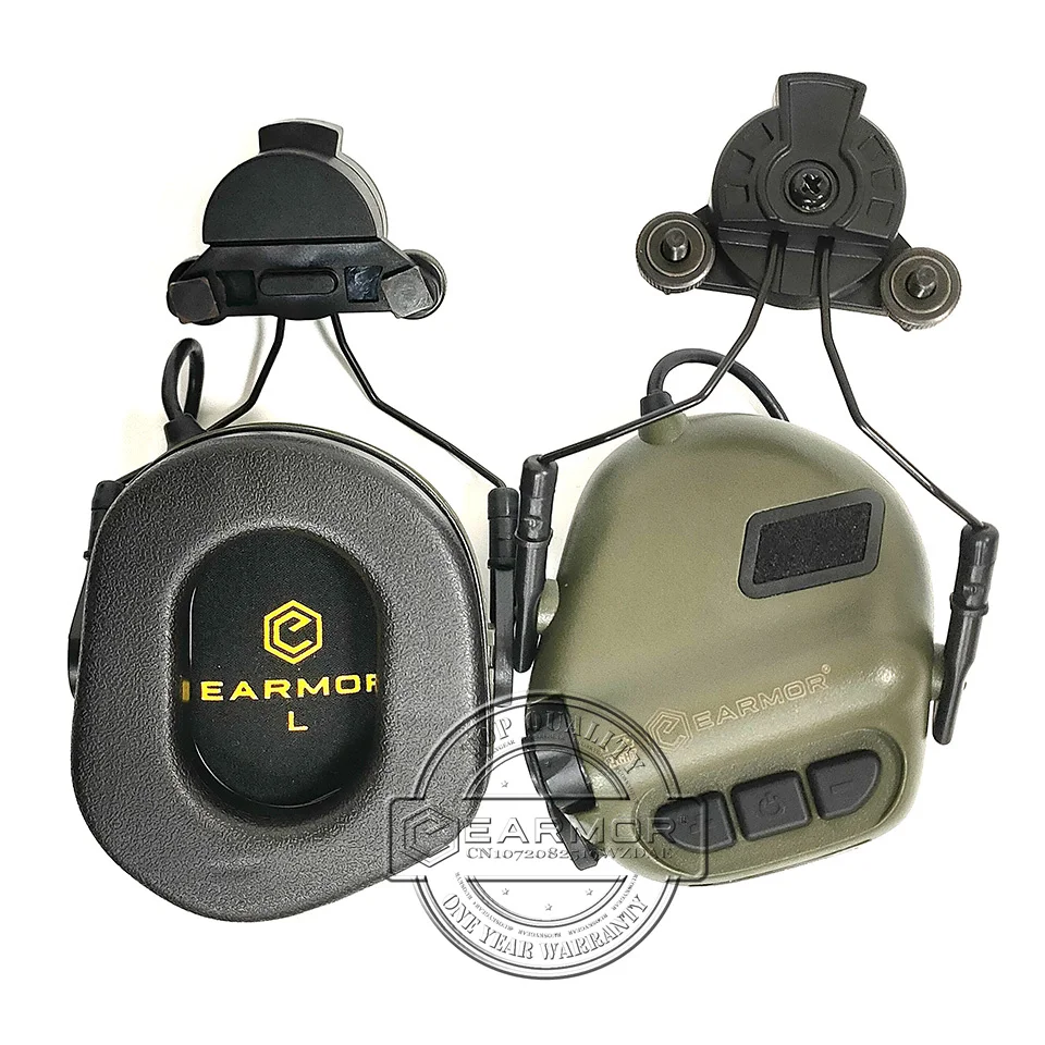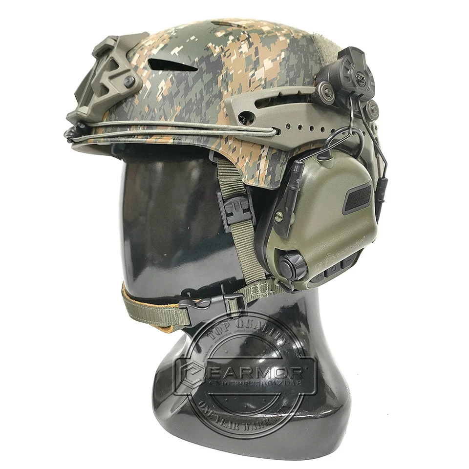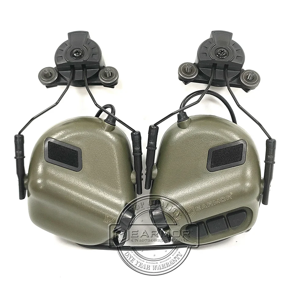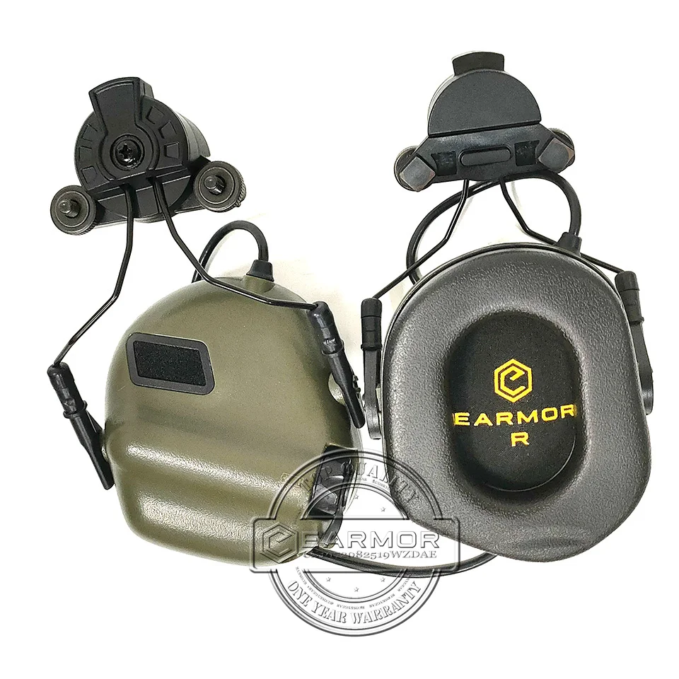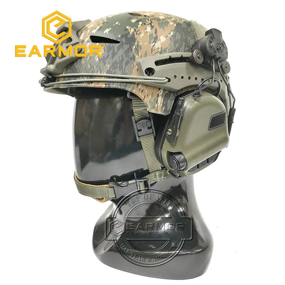 Auriculares tácticos EARMOR M31H con follaje verde, protección auditiva adecuada para casco Wendy Exfil, auriculares militares con cancelación de ruido
