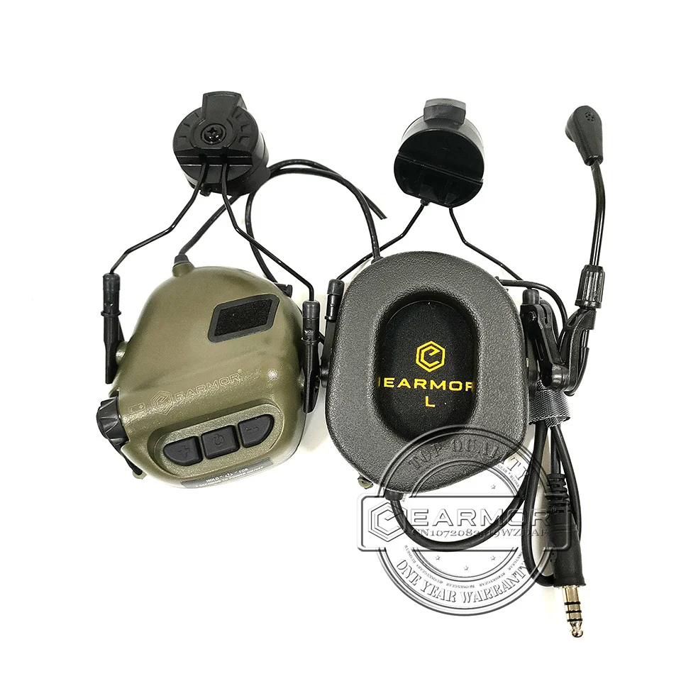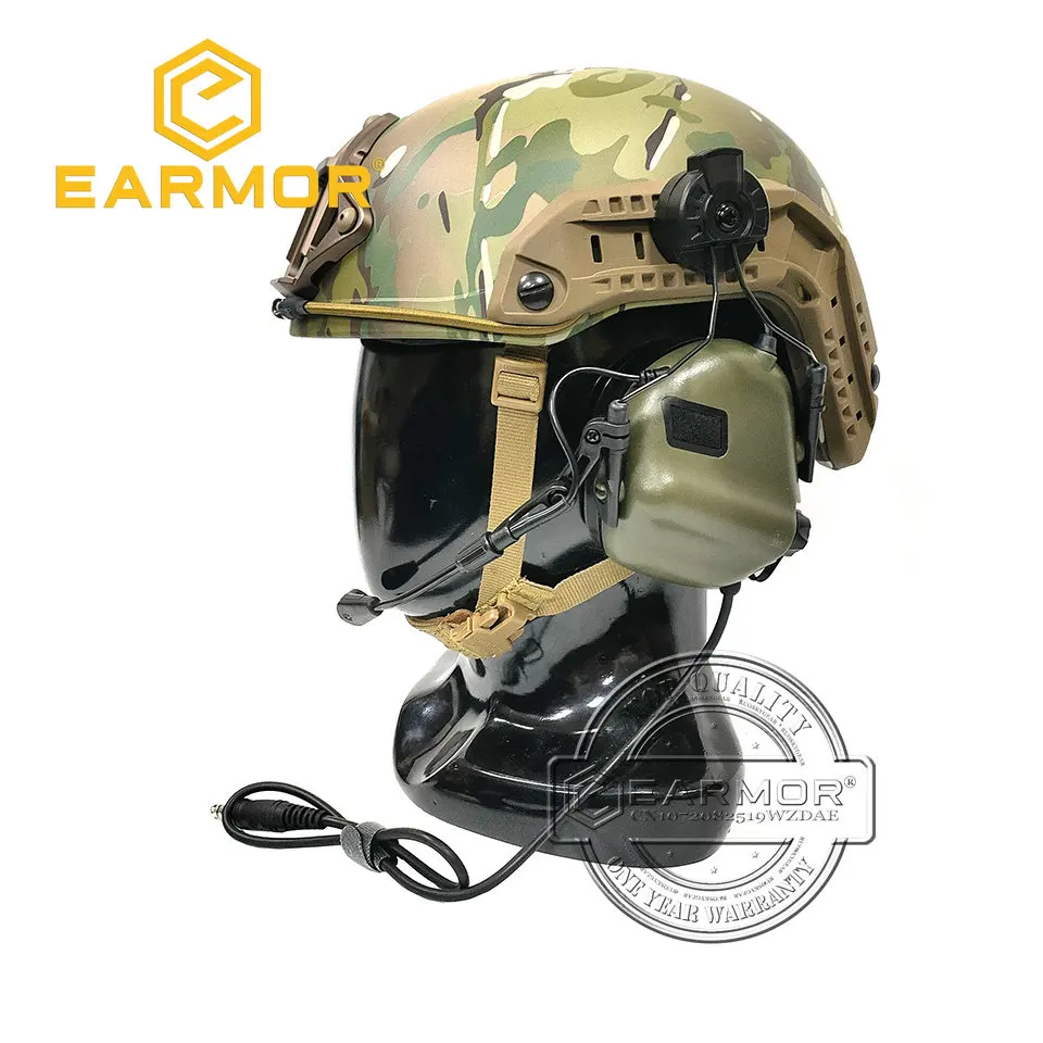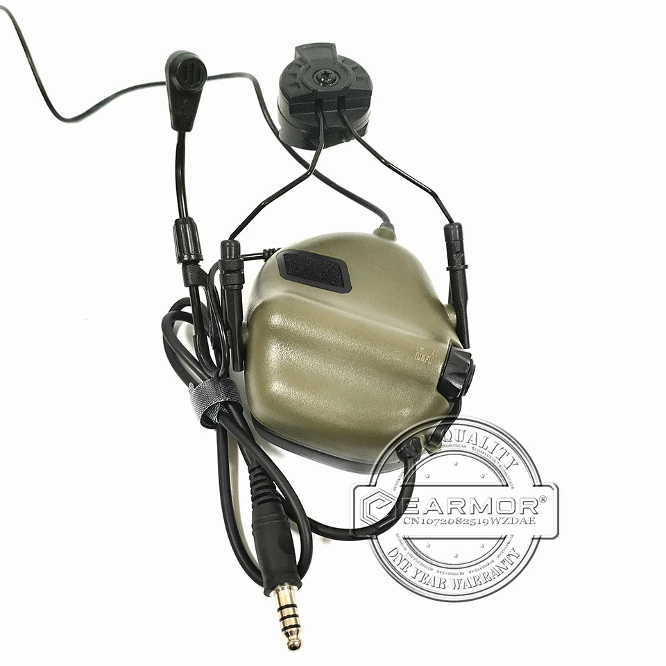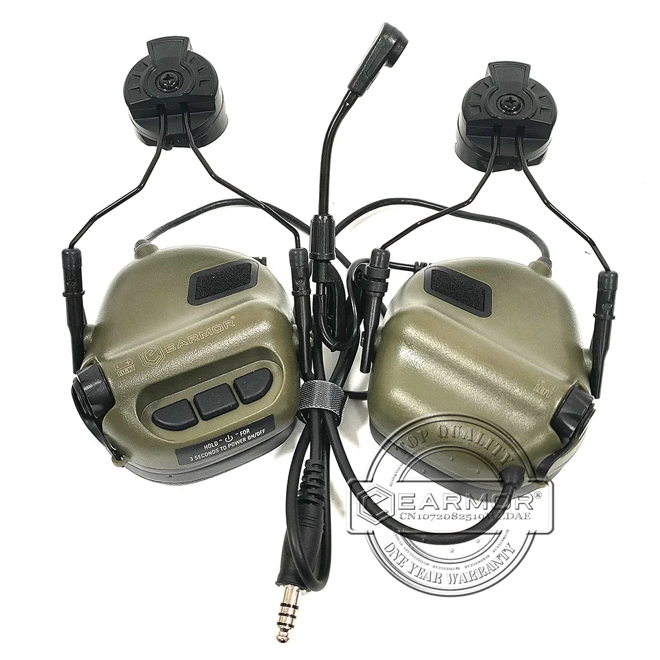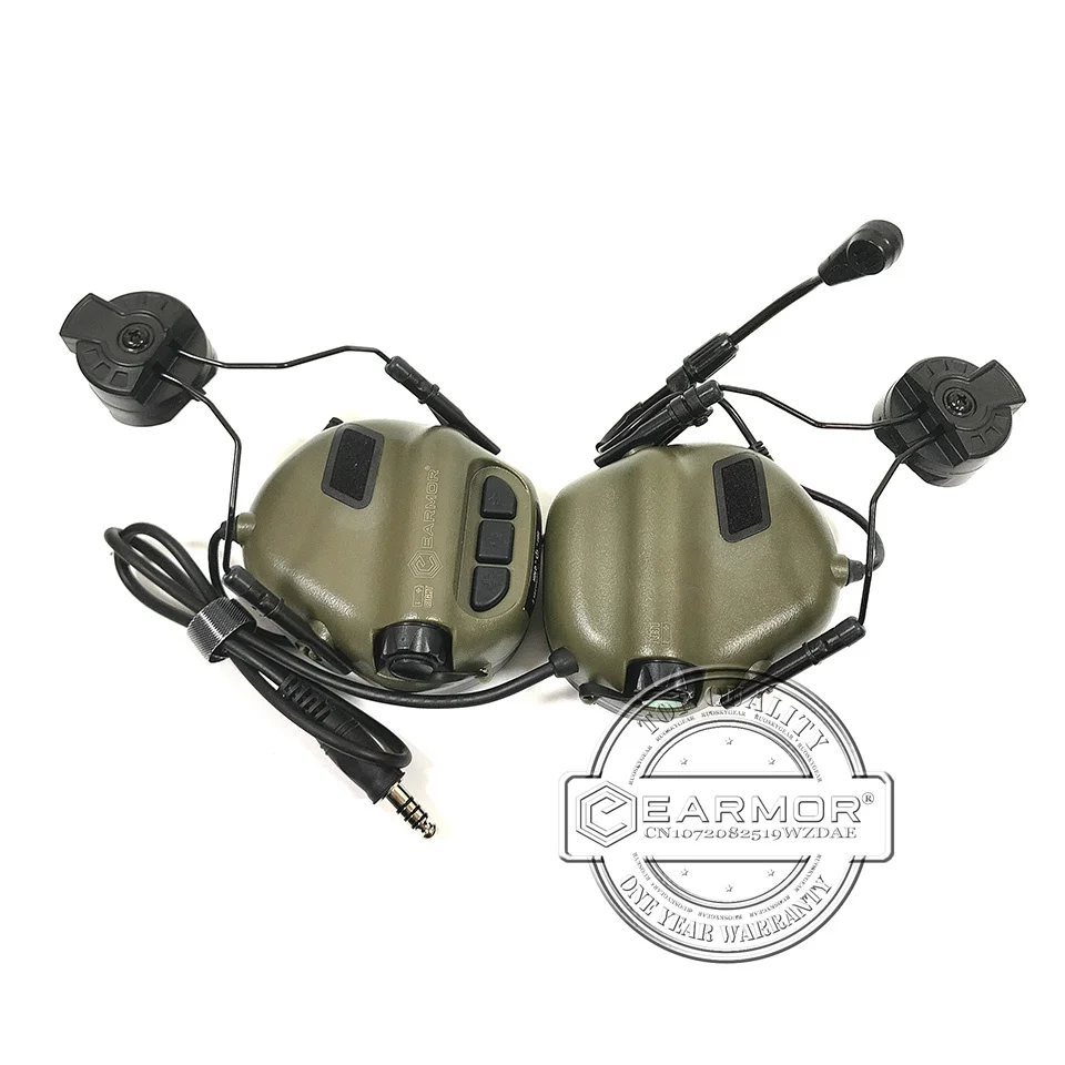 EARMOR M32H MOD3 Follaje Verde Militar Táctico Auriculares RAC Rail Adapter Set Cancelación de ruido Aviación Comunicación Softair Auriculares