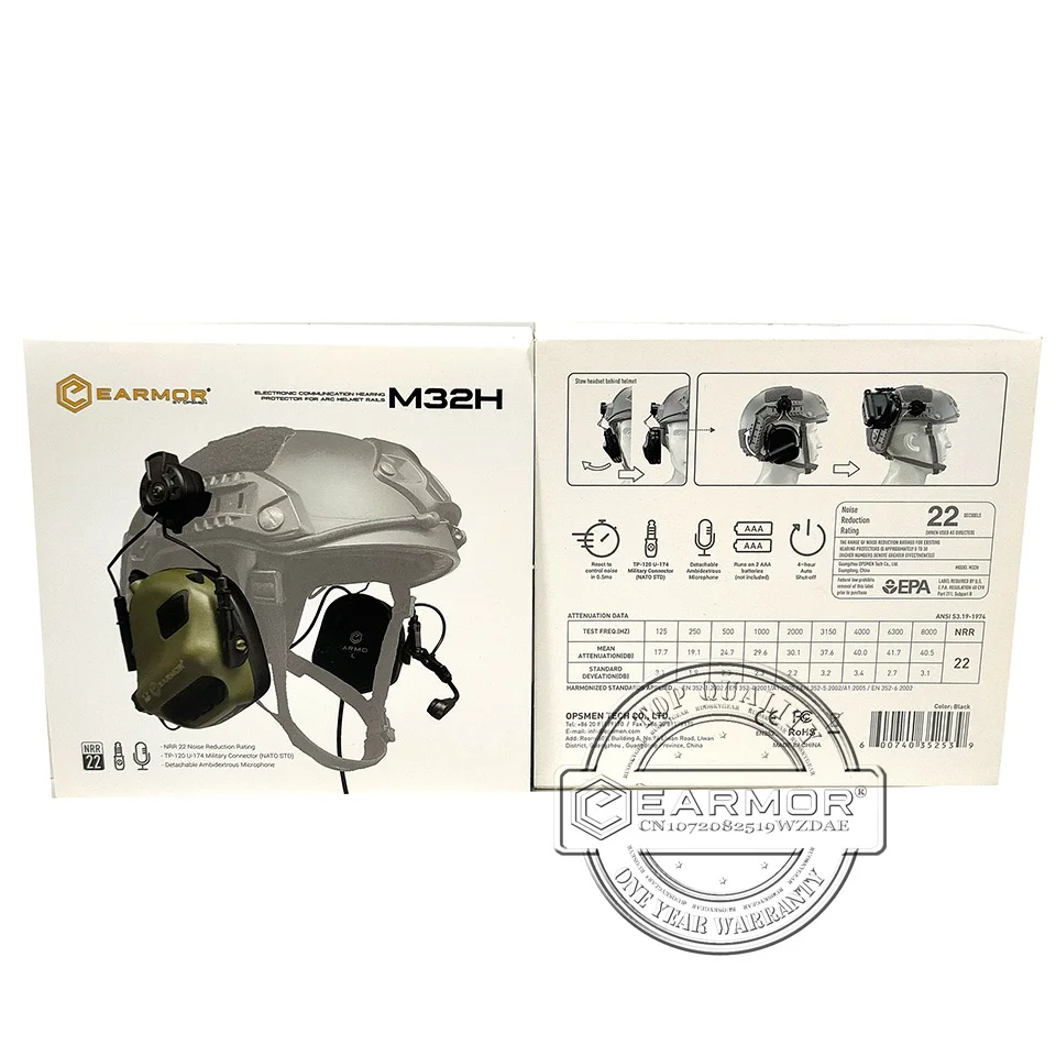 El EARMOR M32H MOD3 es un protector auditivo de comunicación electrónica activado, basado enY viene con Juego de adaptadores de riel de casco para cascos FAST MT,