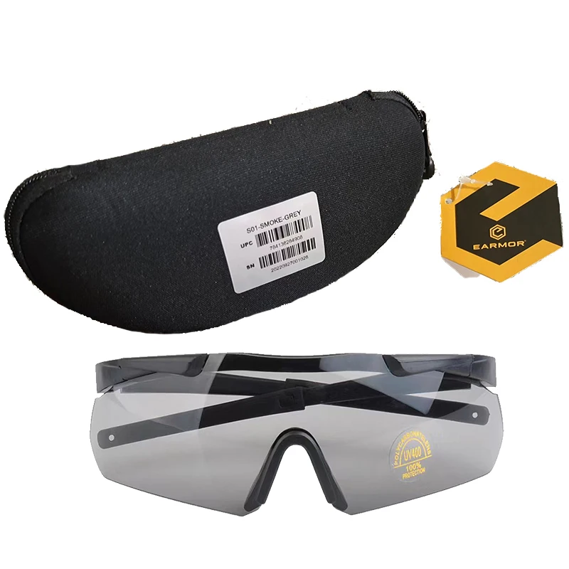 -S01 Son gafas de tiro originales de EARMOR, el grosor de la lente es de 2,8mm. La resistencia al impacto es muy fuerte, lo que es esencialmente diferente de las gafas de sol ordinarias.