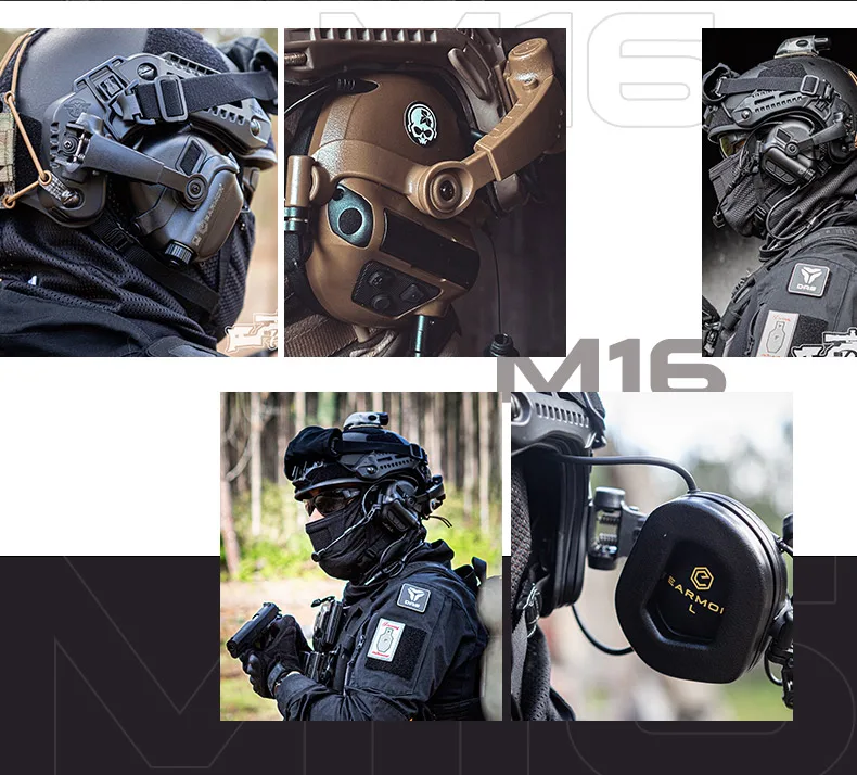 EARMOR M16 Series ARC casco soporte de pista auriculares tácticos con tapa trasera con reducción de ruido
