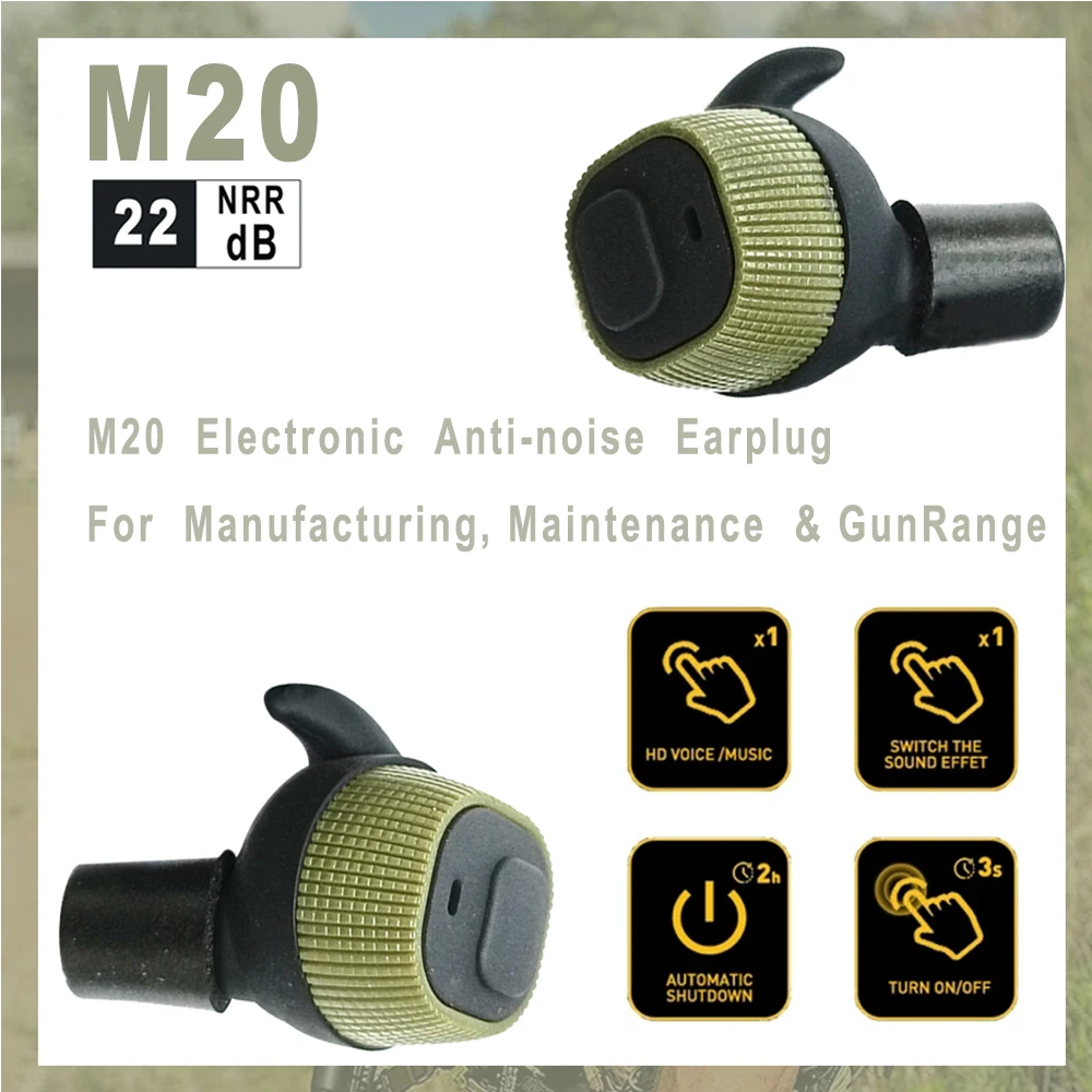 El tapón auditivo electrónico M20 es un producto de protección auditiva excelente y más conveniente.Adopta protección auditiva electrónica interna, que puede ayudar a reducir el ruido continuo y el ruido impulsivo, al tiempo que suprime los ruidos peligrosos superiores a 82 dB y mejora la percepción y la comunicación en entornos ruidosos.Hay dos modos de interior y exterior para ajustar el sonido ambiental.Es adecuado para su uso en entornos con mucho ruido como entrenamiento de tiro, aplicación de la ley, fabricación y construcción, lo que hace que el trabajo sea cómodo y eficiente.La duración de la batería puede ser de hasta 8 horas y hay un recordatorio de batería baja.El estuche de carga portátil no necesita reemplazar la batería, lo cual es conveniente para cargar.En comparación con los auriculares tradicionales con cancelación de ruido, que son más pequeños y livianos, los tapones para los oídos electrónicos combinan compatibilidad, portabilidad y comodidad.Viene con un cable de retención de silicona para evitar pérdidas, y accesorios como fundas para auriculares y almohadillas de diferentes tamaños son convenientes para usuarios con diferentes tamaños de oreja.