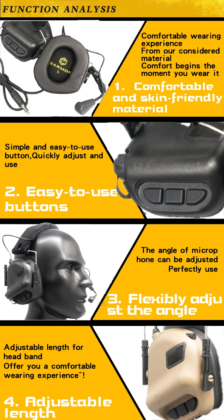 • Uso versátil :Además de ser utilizado por las fuerzas militares, este auricular táctico también es adecuado para uso en juegos de guerra y otras actividades de entretenimiento.
