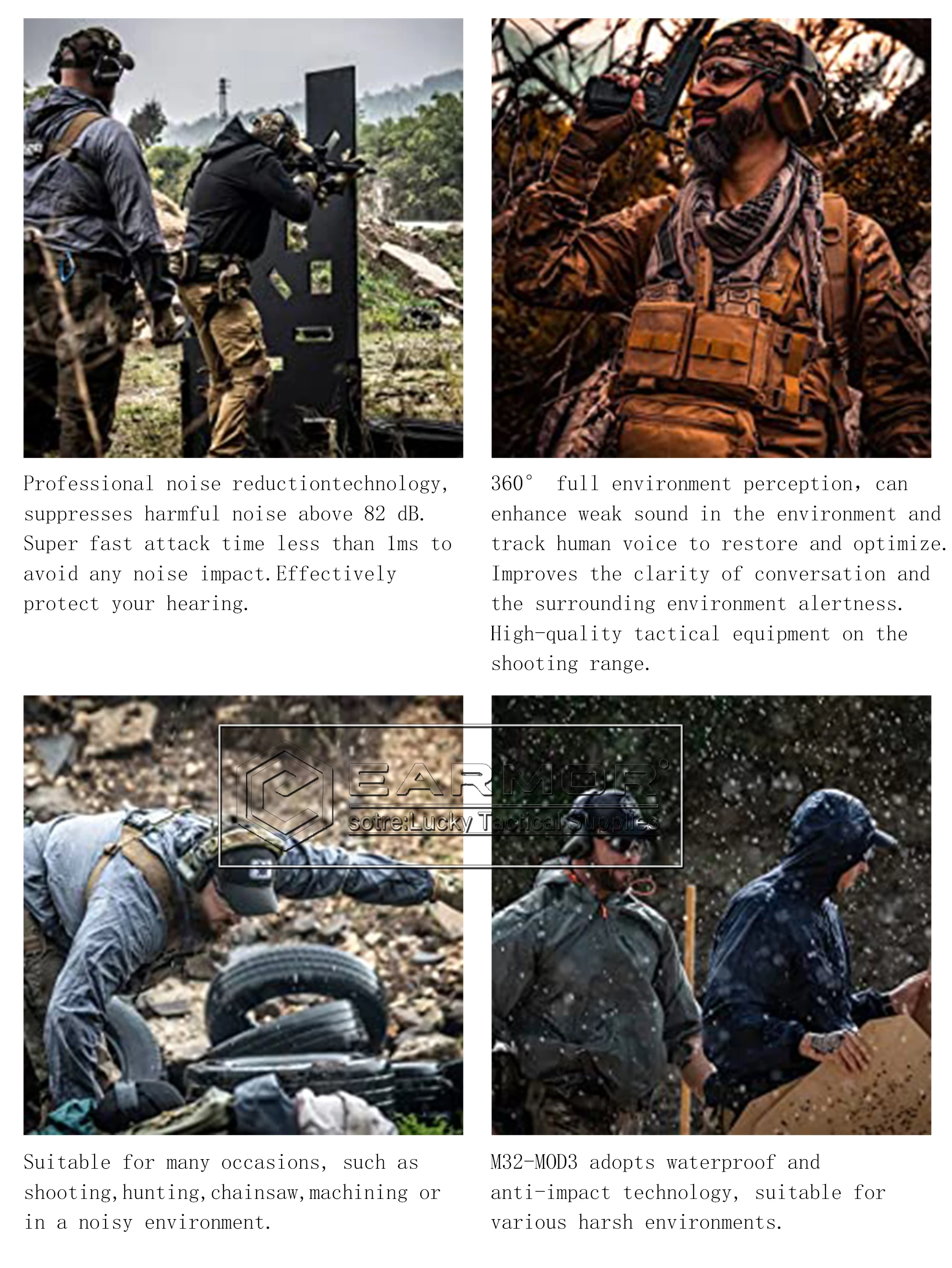 ✅Equipo táctico versátil: lleva estos auriculares tácticos allá donde vayas. Es ideal para practicar el tiro en el campo de tiro, la caza e incluso los juegos de guerra militares completos. ¡También es resistente al agua en la medida de lo posible!