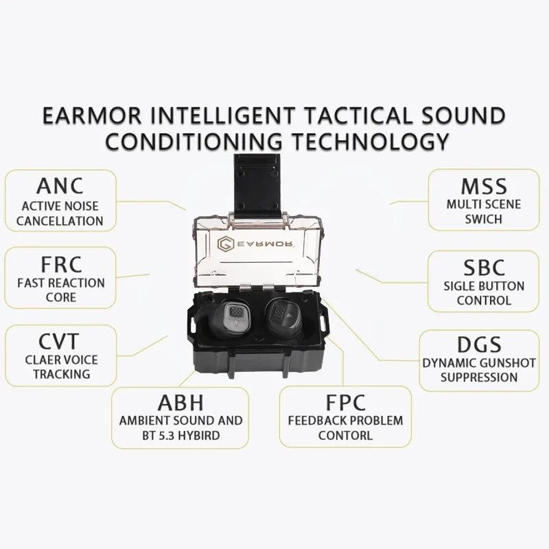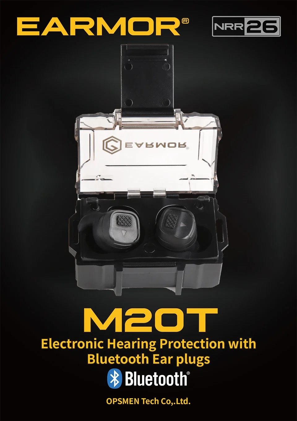 Aplicación del producto M20 T:El EARMOR M20T es un en-Protector auditivo electrónico que elimina el ruido dañino, protege su audición y amplifica el sonido de bajo nivel sin distorsión, para que pueda mejorar el conocimiento de la situación y la comunicación de su campo de tiro.Rápida reducción de ruido-- Sistema ITSC de armadura. EARMOR M20T proporciona una mejor protección auditiva para disparar, proporcionando un NRR de 26 decibelios que suprime el ruido peligroso por encima de 82 decibelios y comprime ultrarrápido 0,5 milisegundos al responder al ruido rápidamente. Reduce eficazmente el ruido alto al disparar.Uso cómodo-- Los tapones auditivos electrónicos de protección auditiva no le molestarán, y ofrecemos cierres de aleta y cabezales de espuma en 3 tamaños para garantizar el ajuste más estrecho para la reducción de ruido y la protección auditiva. También se proporciona un cordón opcional antipérdida para aumentar la seguridad de los tapones para los oídos.Tres modos de sonido-- ¡Potente! El Earmor M20T utiliza un solo botón para cambiar tres modos (silencioso, interior, exterior), adecuado para la caza, el tiro, el entrenamiento, la fabricación, la construcción y otros entornos ruidosos.Fácil de usar-- Protección de auriculares de disparo electrónico con conexión inalámbrica BT5.3, puede conectar dispositivos en estado de cancelación de ruido, escuchar música libremente, aceptar o rechazar llamadas, compartir diversidad de comunicación y entretenimiento.Por favor, siéntase libre de comprar-El estuche de carga de los tapones para los oídos puede cargar completamente el tapón 3 veces en uso normal; los tapones para los oídos pueden funcionar hasta ocho horas cuando están completamente cargados, por lo que no necesita preocuparse por quedarse sin mientras está fuera de casa. La duración de la batería depende del dispositivo, la habilitación de funciones, el uso, el entorno y muchos otros factores.La comodidad también es importante durante mucho tiempo-Desgaste temporal. El único lado del auricular pesa solo 8,3g, que es ligero y no cuelga. La funda de los auriculares es muy pequeña, solo pesa 72 gramos. No pesa en el bolsillo. No hay necesidad de preocuparse por la portabilidad. También es compatible con ipx5 anti-salpicaduras. No importa si está lloviznando o sudando. La duración de la batería también es fiable. Cuando está completamente cargado, la batería del auricular dura hasta ocho horas.Nota-- Si el tamaño de los tapones para los oídos no coincide con el tamaño de su canal auditivo, o si los auriculares no están instalados correctamente en el oído, es posible que no logre la reducción de ruido o la calidad de sonido correcta. Asegúrese de elegir el mejor tamaño para su oreja.Lista de envío:1 tapones para los Oídos Electrónicos Bluetooth M20T (no se incluyen otros productos)