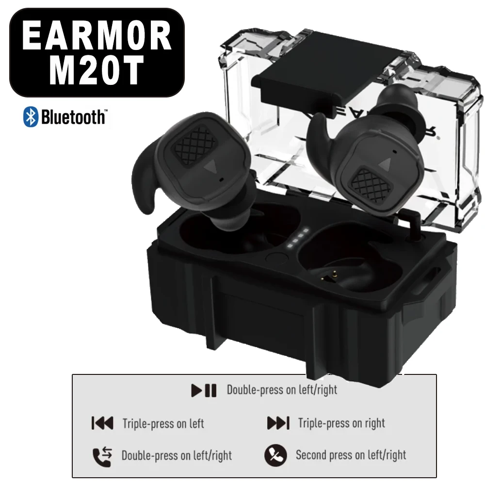 EarmorM20T In-ear electrónico inalámbrico BT5.3 reducción de ruido protección auditiva tapón para los oídos para disparo de alcance NRR de 26