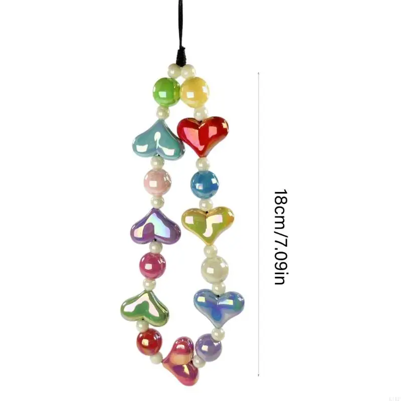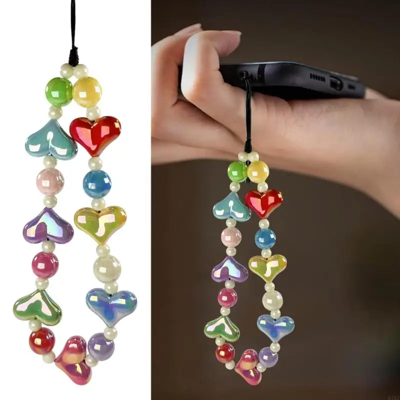 Fabricada en acrílico, esta correa para teléfono multifuncional presenta un corazón suave y cuentas redondas para una durabilidad resistente a los arañazos y al mismo tiempo sirve como un práctico accesorio para la bolsa.