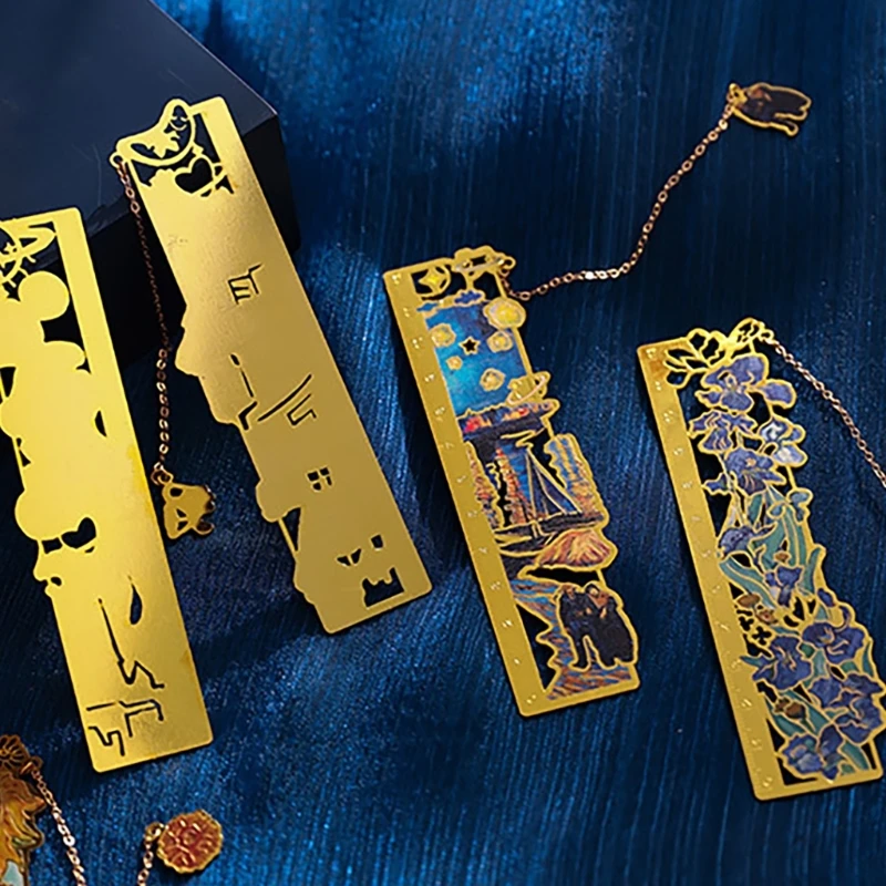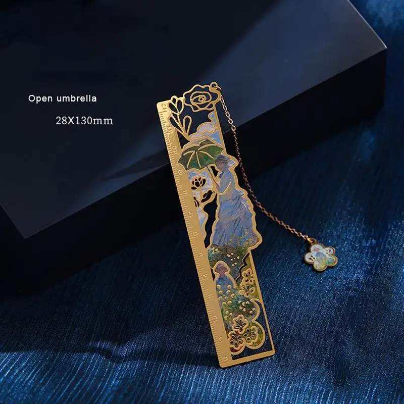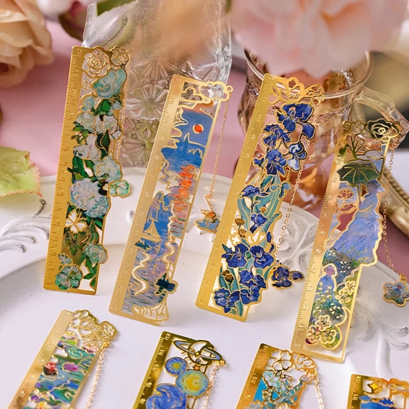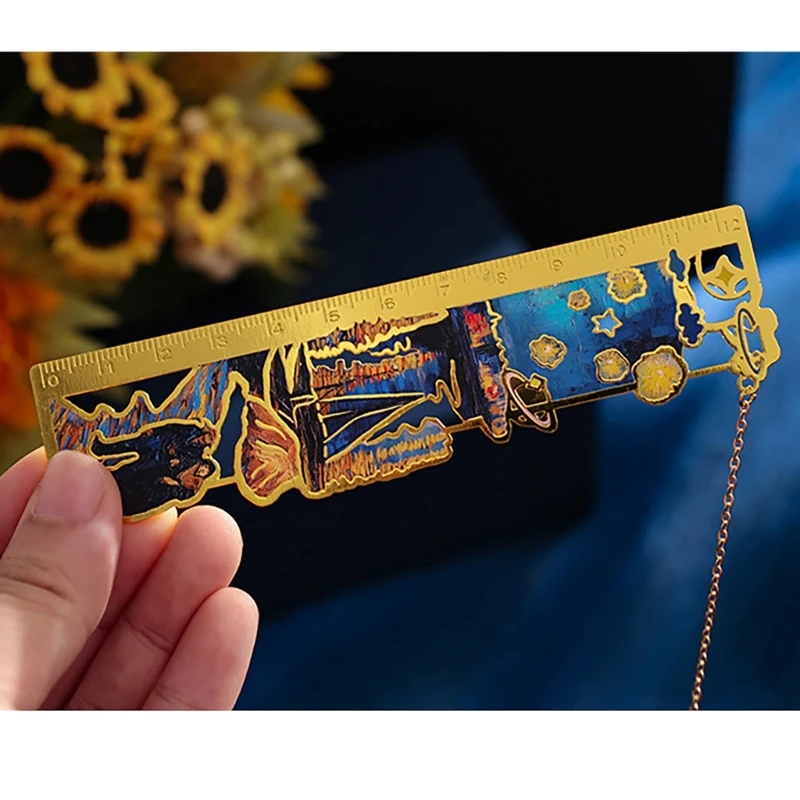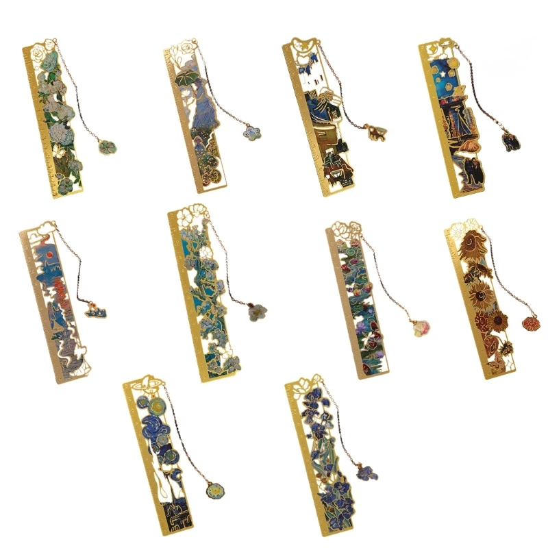 Elaborados con metal de hierro, estos creativos marcapáginas huecos presentan diseños intrincados y una regla de escala, que también funciona como regla de medición, ideal para estudiantes y amantes del álbum de recortes que buscan marcadores de lectura funcionales y estéticos.