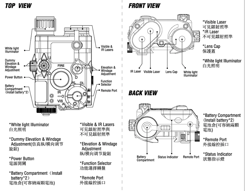 · Note: If you use the IR lens, you need to use the night vision goggle to see the light