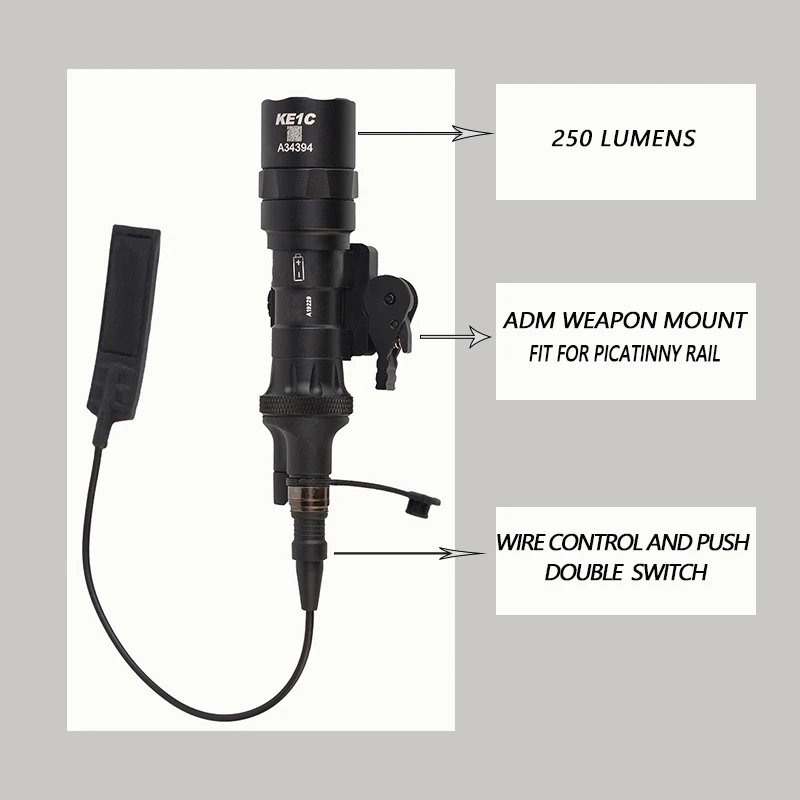 Nombre del artículo: Interruptor de montaje M322 Scout Light wDS07 y interruptor de presión ADM arma monttremote interruptor momentáneo encendido/clic interruptor constante encendido.