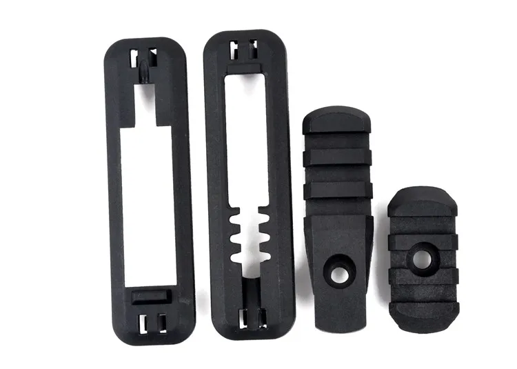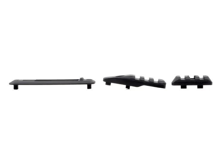 El kit de cuatro piezas incluye una sección de riel corto, voladizo