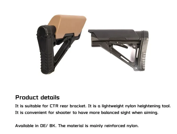 Elevador de mejillas CTR de altura táctica, adecuado para Stock sin pistola, potenciador AR 15 M4, accesorios Airsoft de nailon de baja altura
