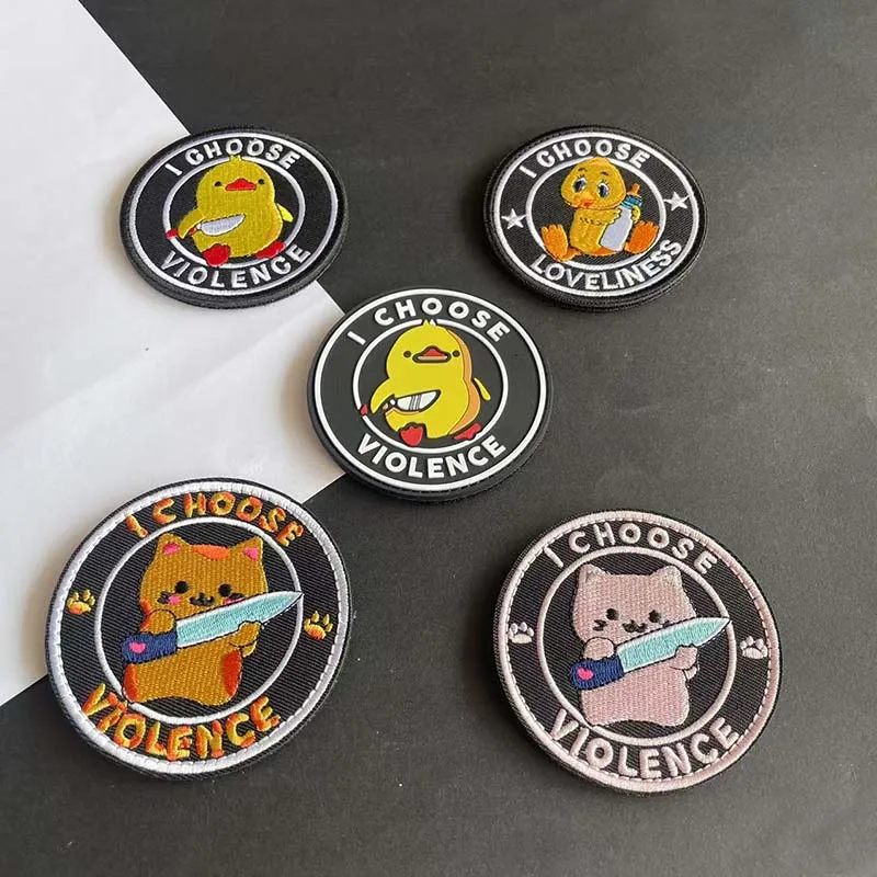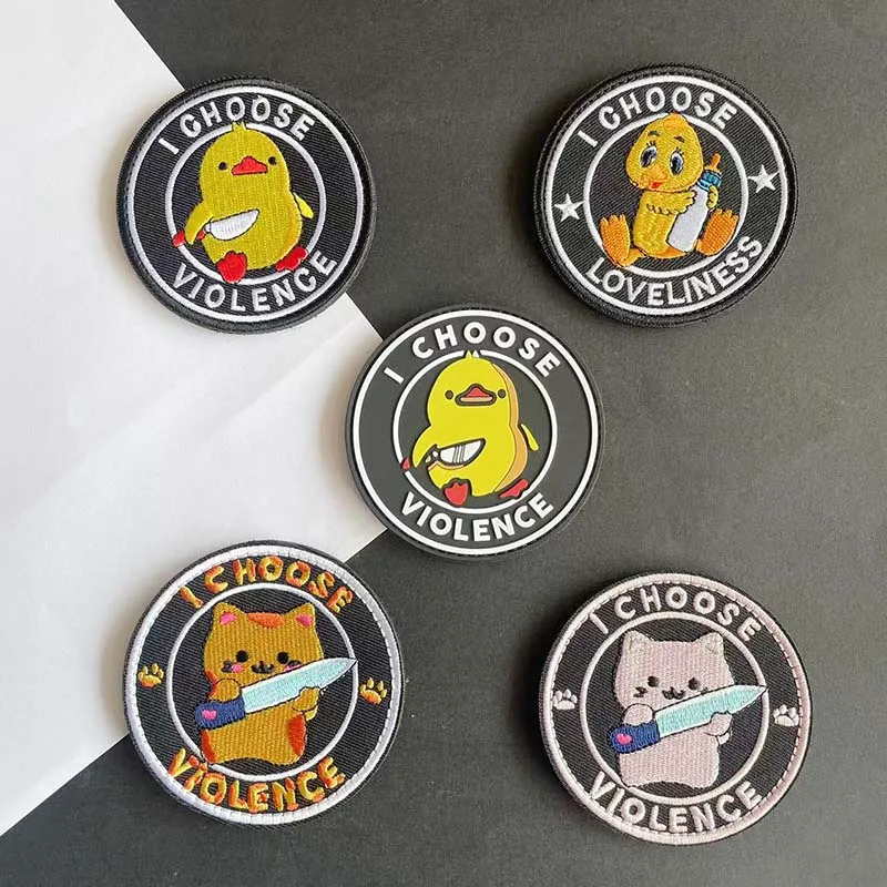 Elige insignias de moral de violencia pato divertido, lindo gato con pegatinas de cuchillo bordado de apliques, parches tácticos de PVC gancho bucle