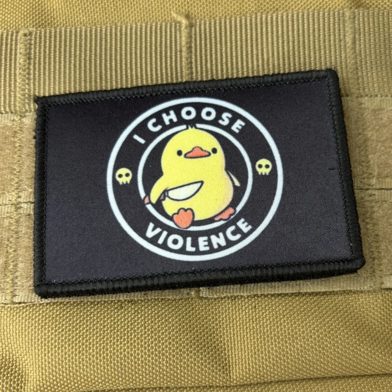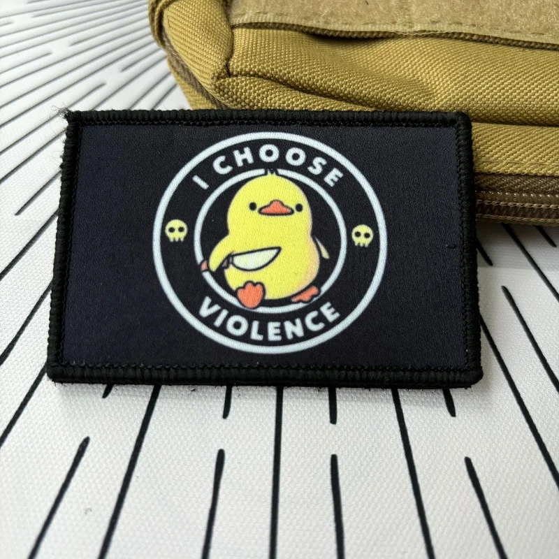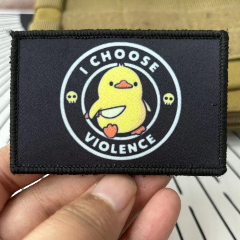 Elige la violencia, parches tácticos de moral de pato amarillo, parche de gancho y bucle impreso divertido, insignia militar, brazalete, pegatinas para mochila