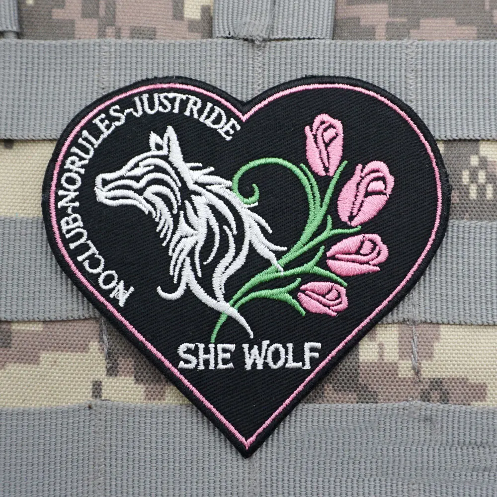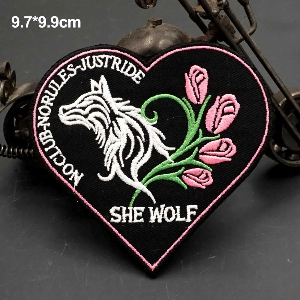 Ella lobo no club, sin reglas, solo paseo, parche bordado, apliques, etiqueta de costura, banda de motorista punk, insignias de tela de Rock con respaldo de gancho