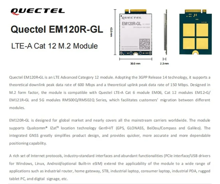 EM120R-GL LTE-A Cat12 4G M.2 módulo tarjeta WWAN para P14s T14 T15 X13 L15 L14 Gen2 adaptador WAN para ordenador portátil
