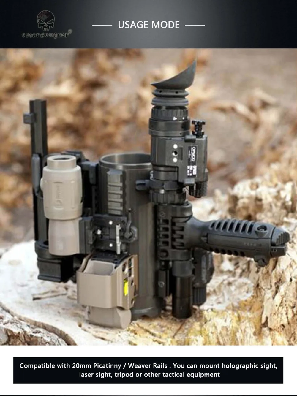 5. The side of this tactical cup can attach 3 picatinny/ weaver rail( 20mm/ 2cm/ 0.79", not included). Suitable and convenient for you to