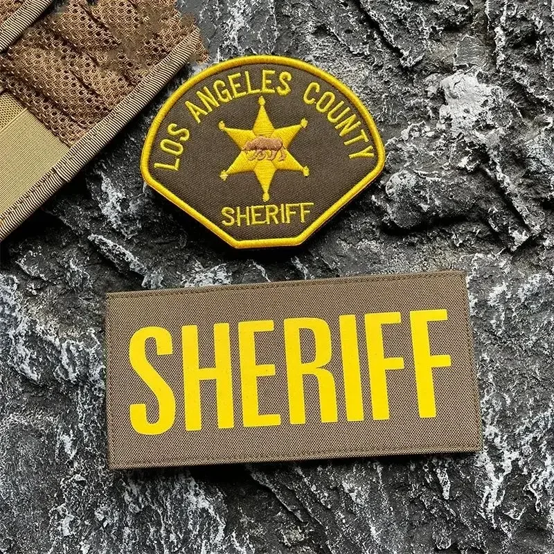 Emblema de seguridad de EE. UU., accesorio táctico, insignia de moral, pegatina de tanque grande SHERIFF, parches de gancho y bucle bordados, brazalete militar