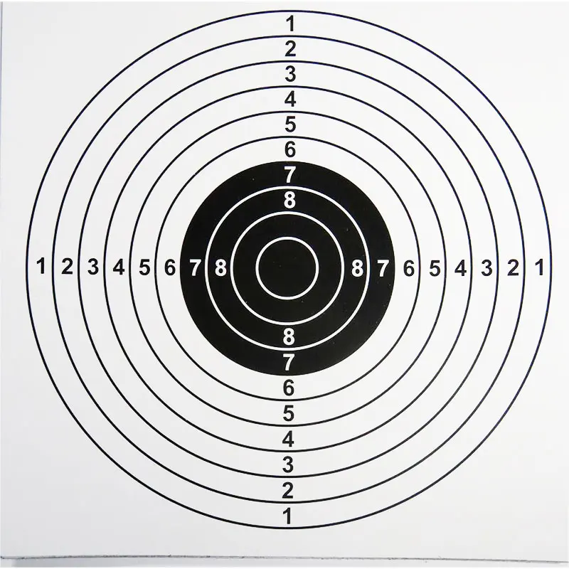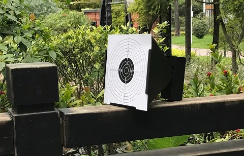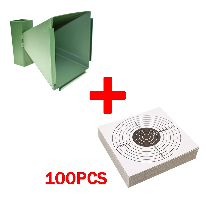 El producto se puede insertar en papel objetivo de 14*14 cm para la práctica de tiro. El precio actual incluye 100 papeles de destino.